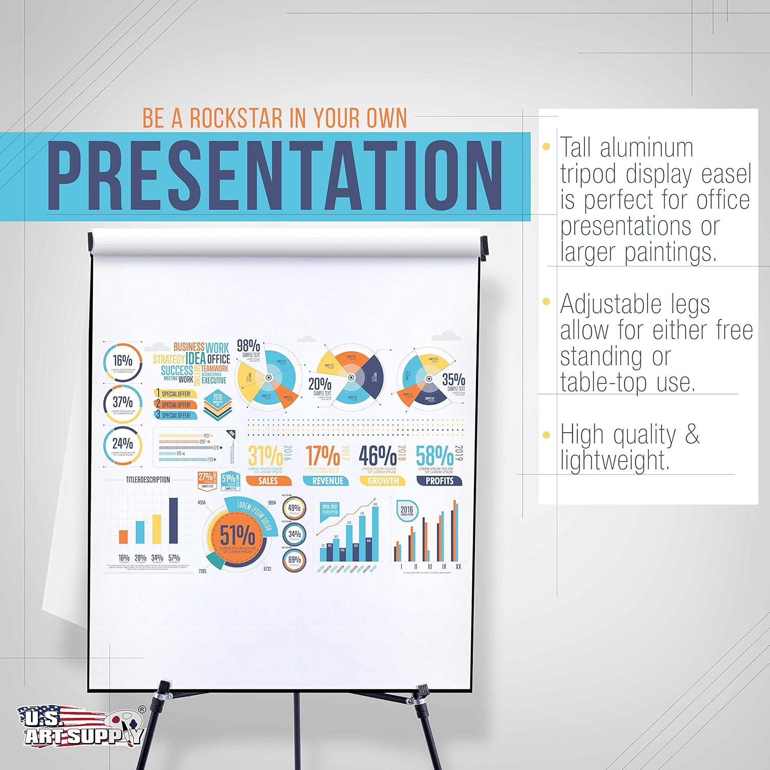 U.S. Art Supply 66" High Boardroom Black Aluminum Flip Chart Easel & Presentation Stand (4 Pack) - Adjustable Floor/Tabletop, Portable Tripod, Holds 25 lbs., for Chart Paper, Poster Boards, & Pads