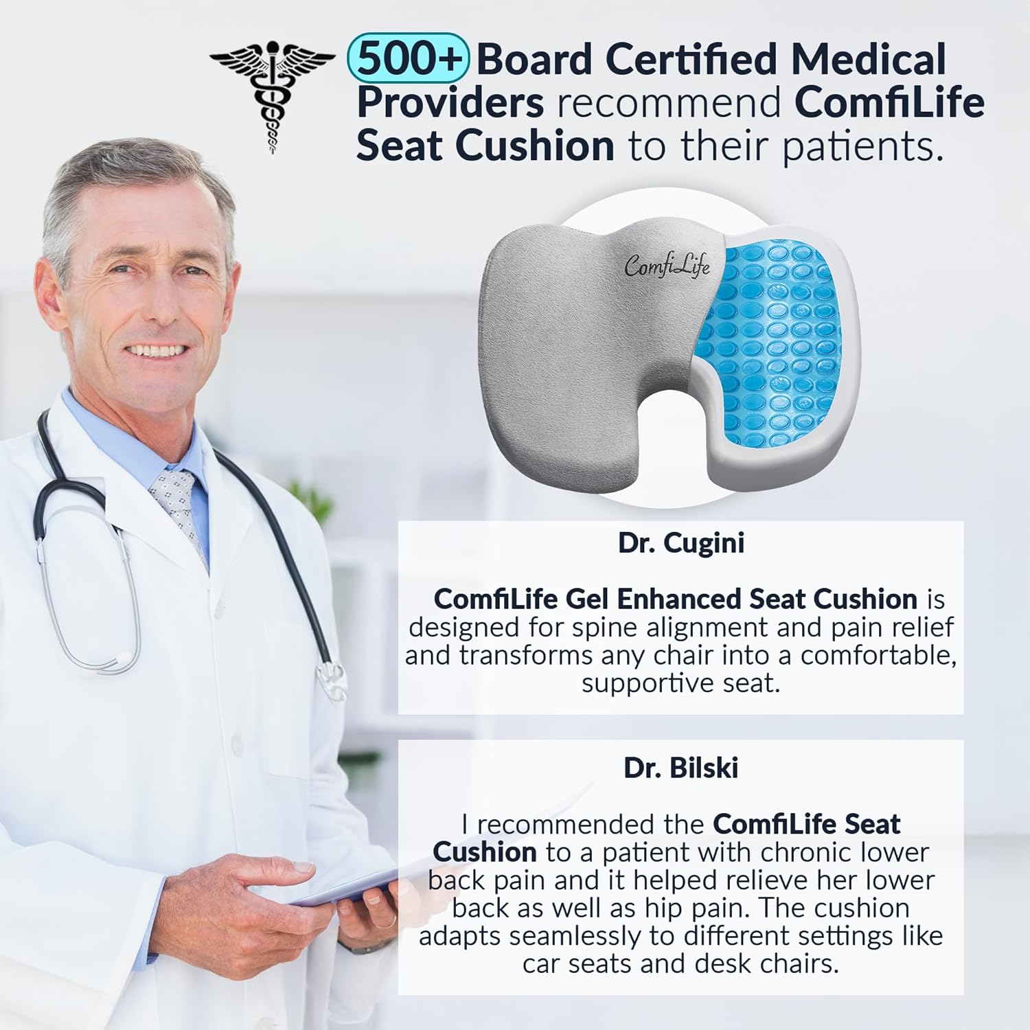 ComfiLife Gel Enhanced Seat Cushion – Office Chair Cushion – Non-Slip Gel & Memory Foam Coccyx Cushion for Tailbone Pain - Desk Chair Car Seat Cushions Driving - Sciatica & Back Pain Relief (Gray)