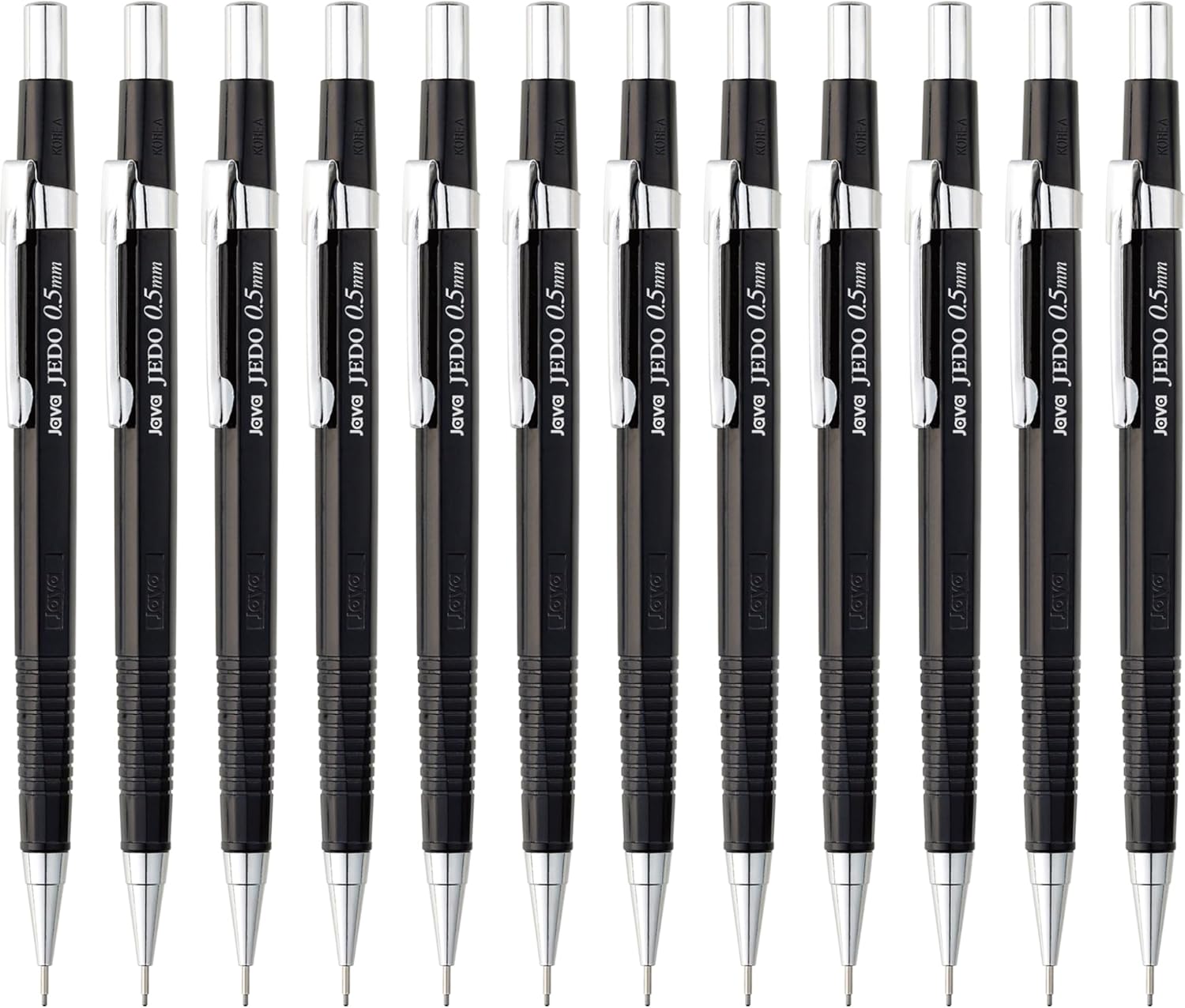 JAVAPEN 0.5 mm Mechanical Drafting Pencils – 12-Pack, Precision Lead, Anti-Roll Hex Barrel, Built-in Eraser, Smooth Writing – Made in Korea