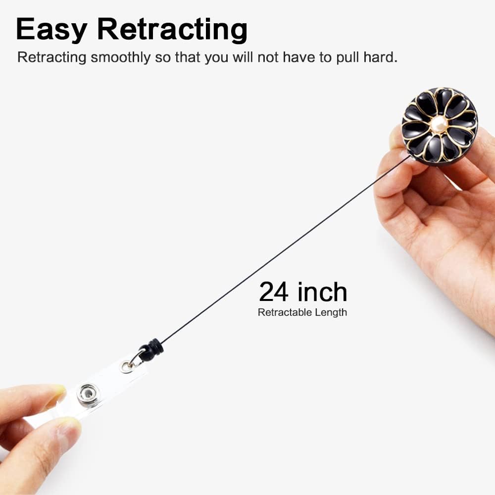 Retractable Badge Holder with Alligator Clip, 24 inch Retractable Cord, ID Badge Reel with Pearl, 3 Pack (Multiple)