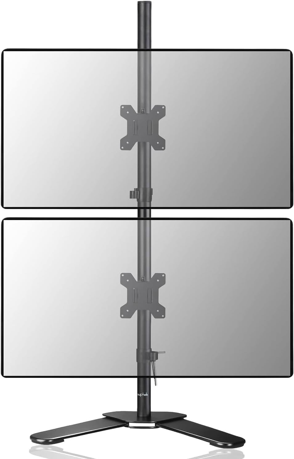 Suptek Dual LED LCD Monitor Stand up Free-Standing Desk Mount for 2 / Two Screens up to 32 inch Extra Tall 31.5 inch Pole Heavy Duty Fully Adjustable Stand Vertical Array (ML6802)