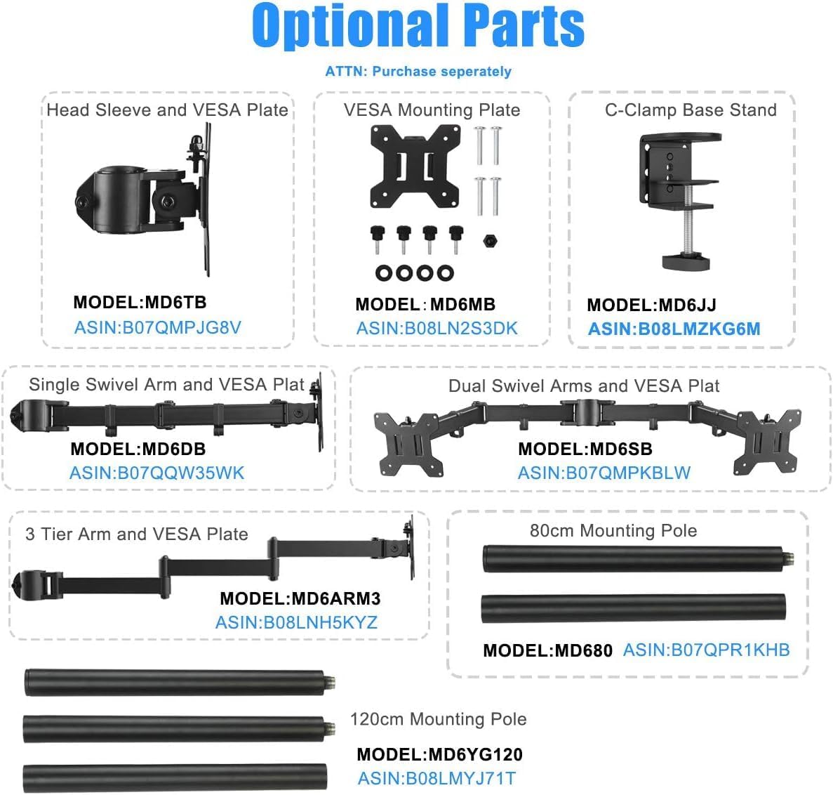 - Aticulation - Rotate 360°, tilt ±45° up and down, swivel ±45° left and right, extra tall height adjustment along the center pole.