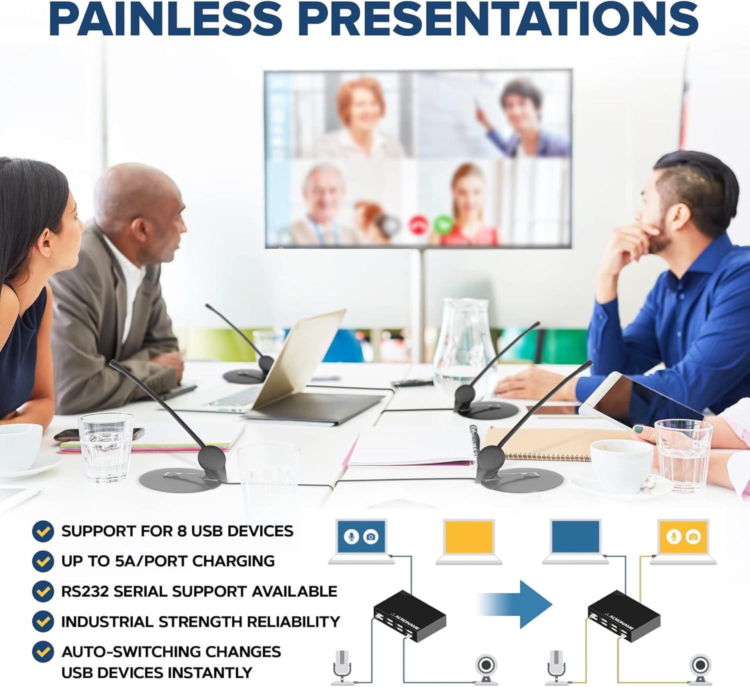 Managed USB Switch/Hub 2 Computers - 9 Port, Fast Charge (4A), Industrial & Scientific Grade, Programmable Compatible with Mac/Windows/Linux for Keyboard Mouse External Hard Drive