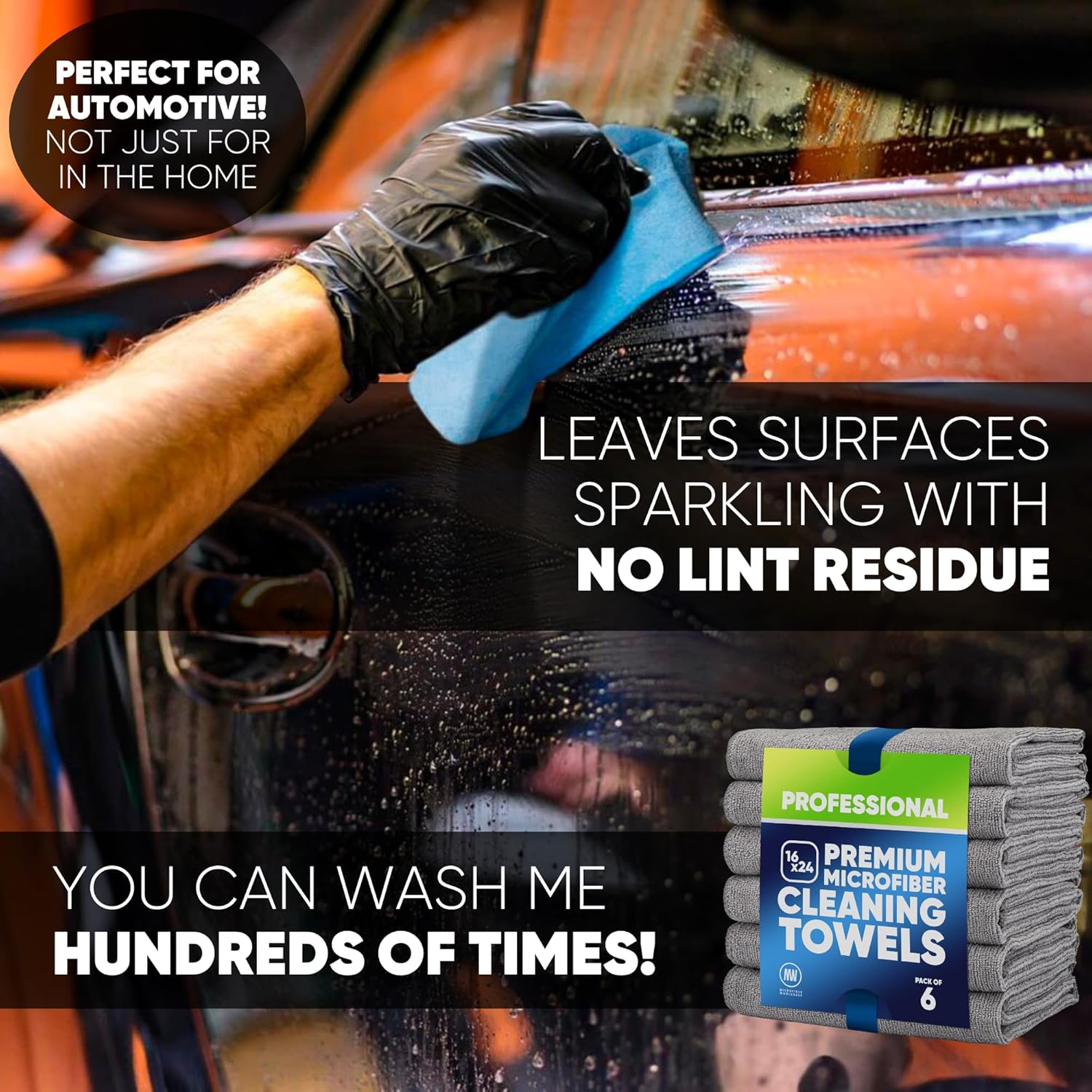 Microfiber Wholesale 16" x 24" Pro Multi Surface Microfiber Towels | 6 Pack (Gray)