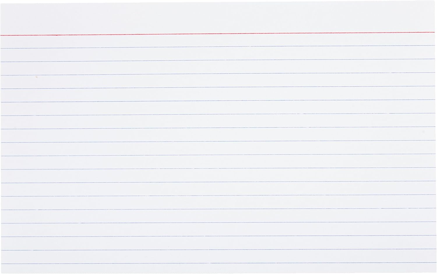 - 500-count pack of white index cards; ruled on one side for easy note taking