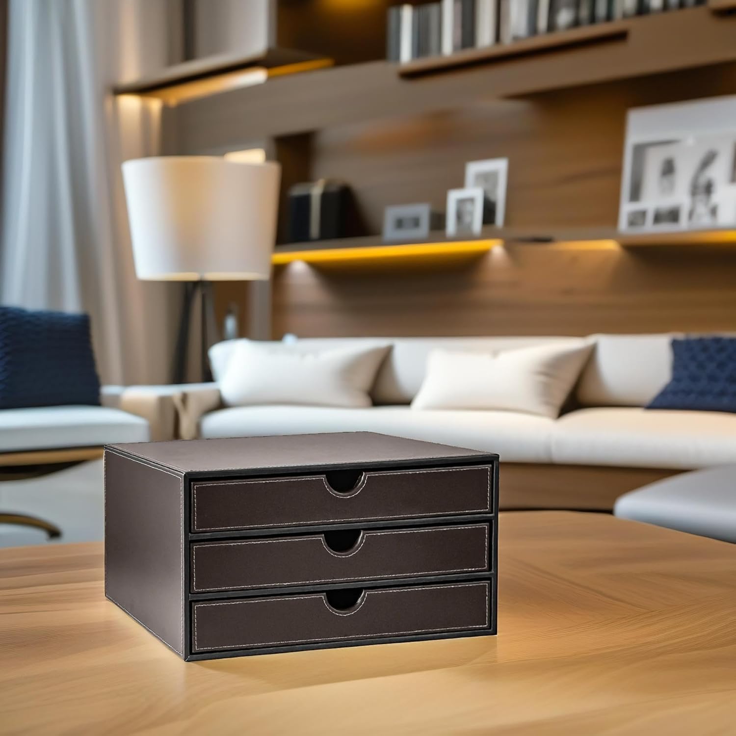 UnionBasic Leather Desktop Drawer Organizer, File Cabinet Magazine Document Holder, Office Supplies Desk Storage Organizer Box, 3 Drawer, Coffee