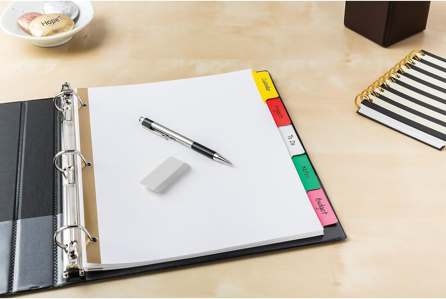Avery Big Tab Write & Erase Dividers for 3 Ring Binders, 5-Tab Sets, Multicolor Divider Tabs, Great for Organizing Projects, Reports, Finances, and More (48-Pack of 23076)