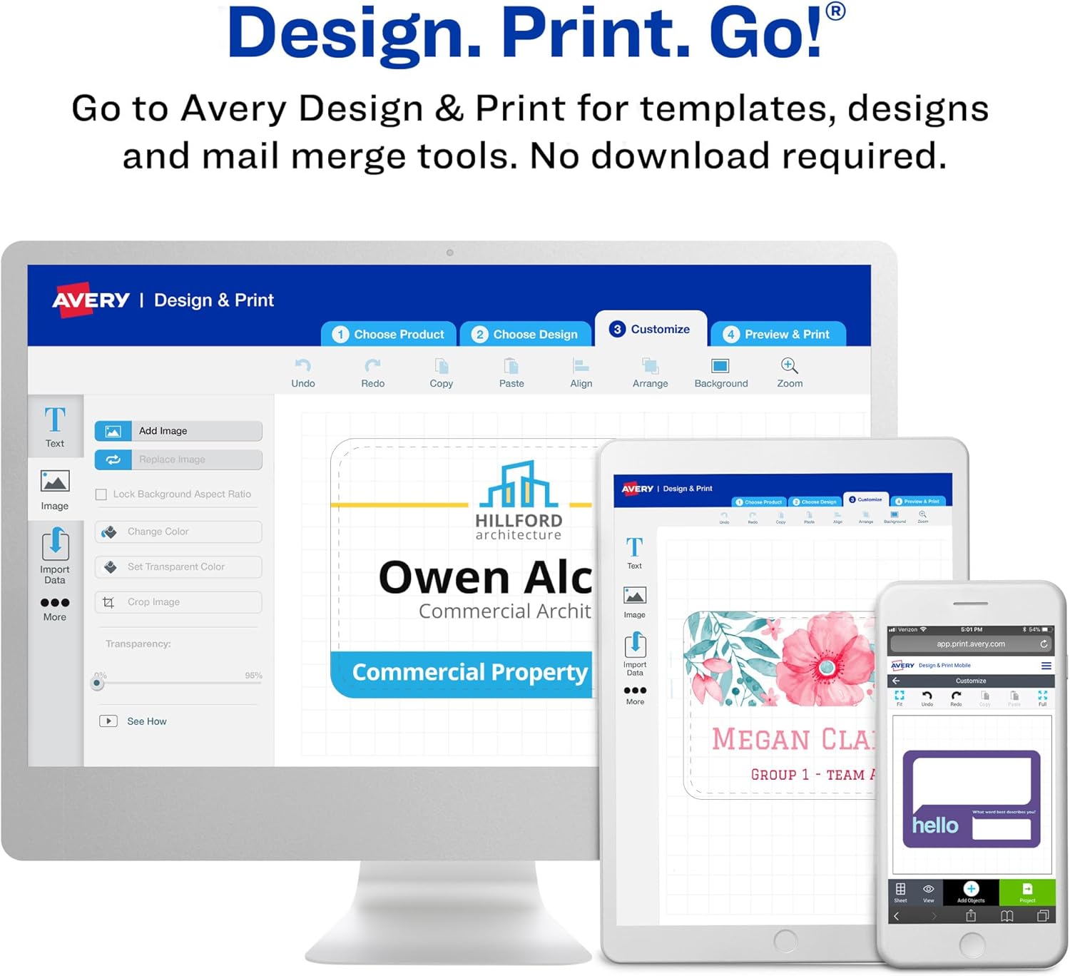 Avery Flexible Printable Name Badges, 2-1/3" x 3-3/8" Rectangle Labels, White, 5 Packs, 2,000 Removable Name Tag Stickers Total (5395)