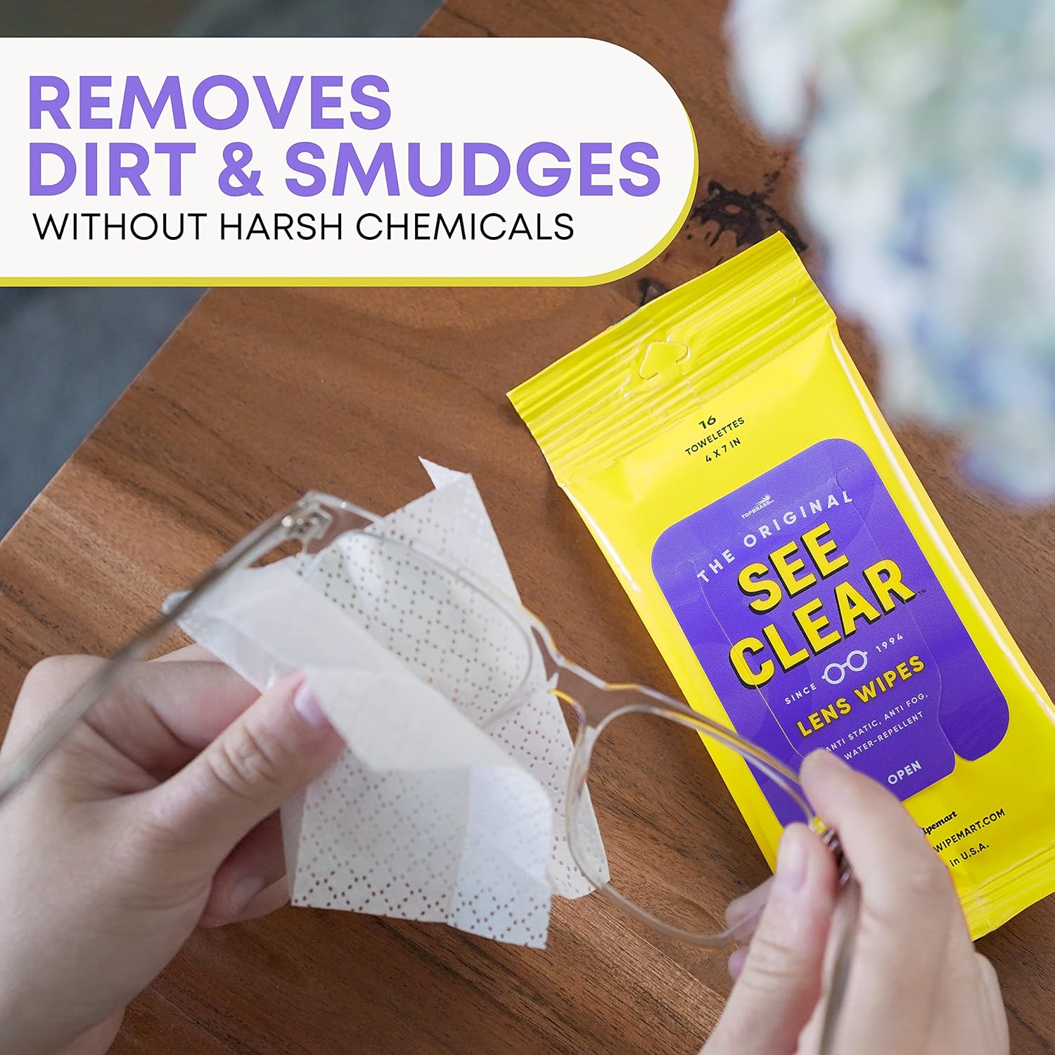 - SEE CLEAR SCREEN & EYEGLASS CLEANING: See clear with See Clear cleansing wipes! Our lens wipes are the ideal solution for cleaning eyeglasses, sunglasses, tablet and phone screens, smart watch displays, computer screens and more. Safe glass cleaning wipes for all lenses and high end optics, including AR lenses, coated lenses, and camera lenses.