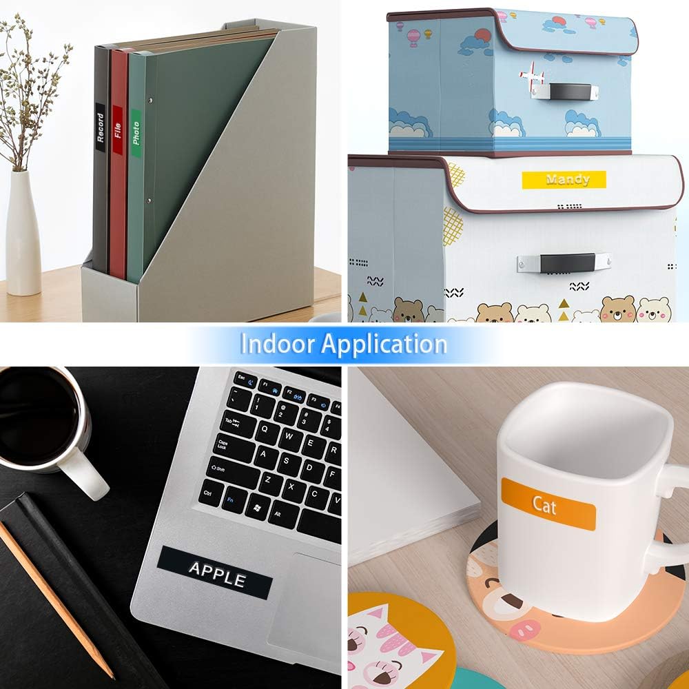 - Application: Ideal for home, office and outdoor use, labels resists fading and are designed to last. For labeling files, folders, shelves, books, cabinets, accessories, etc. Sticks to most clean surfaces and won’t break or leave residue when removed