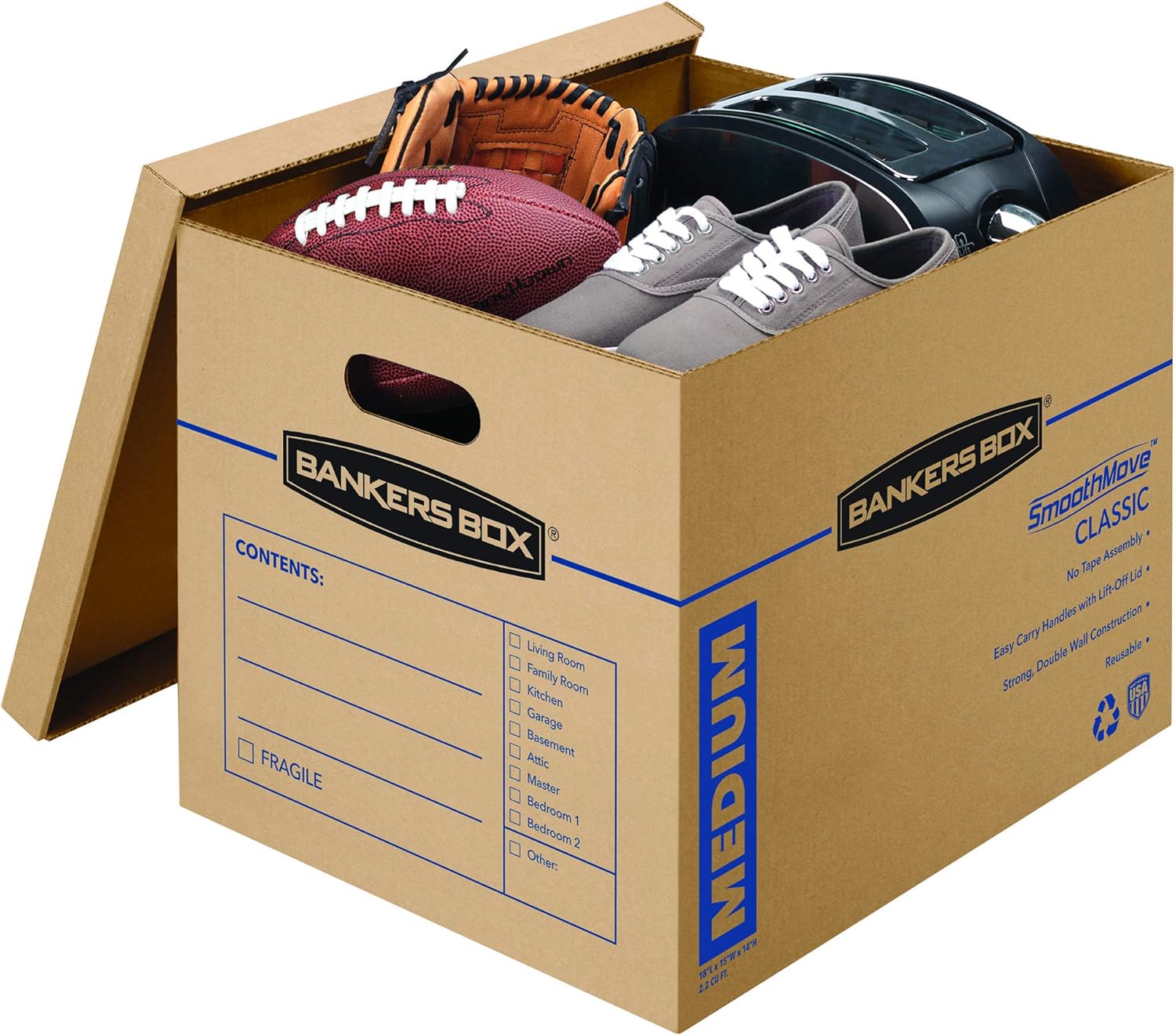 Bankers Box Medium Classic Moving Box 20 Pack, Reinforced Handles, Tape-Free Assembly, Box with Lid, 19-in x 14.5-in x 15.5-in (8817202)