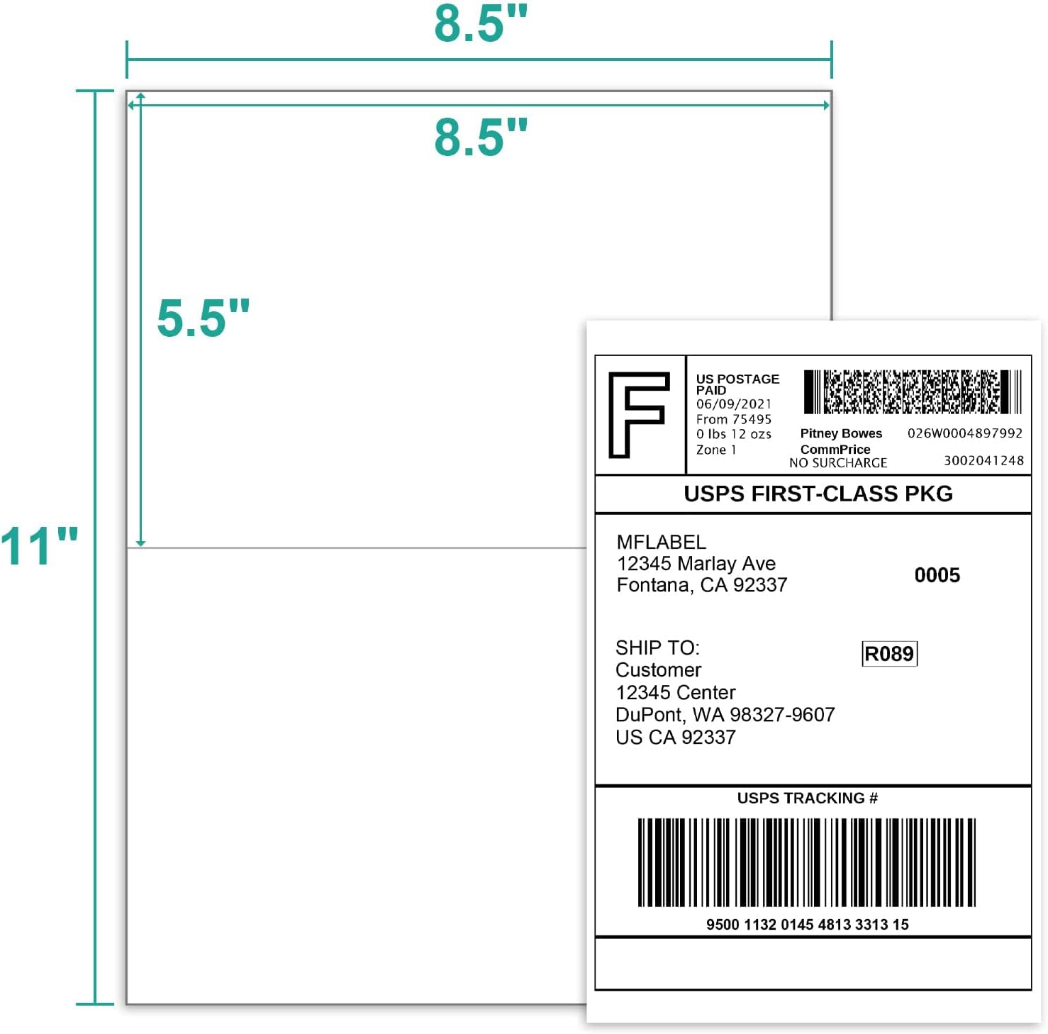 MFLABEL Half Sheet Label Laser/Ink Jet USPS UPS FedEx Shipping Label 8.5 x 11 Inches Packaging Labels, Address Labels for Laser & Inkjet Printers, 10000 Count(5000 Sheets)