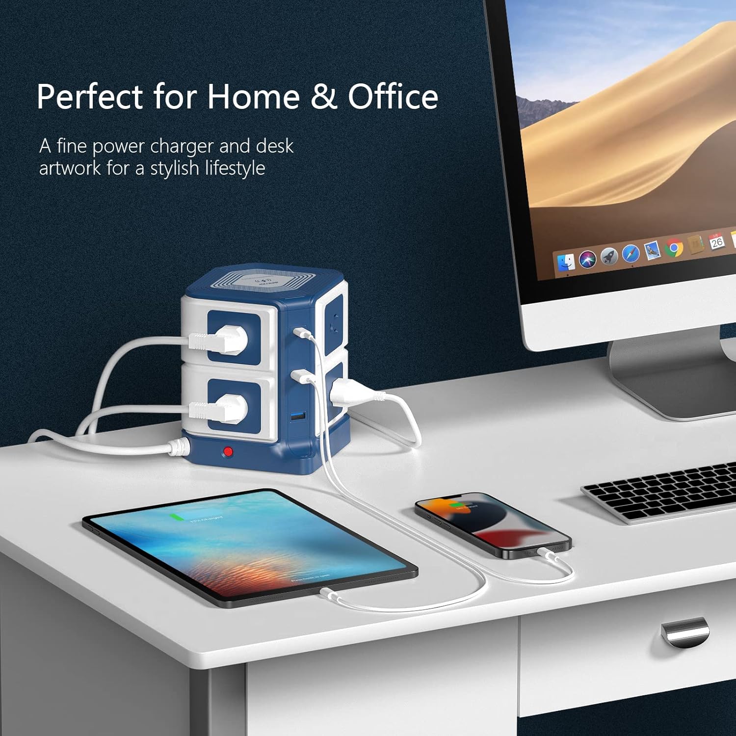 - Space-Saving Design: The power strip tower provides multi-angle charging, which saves you more desktop space, and can be used for multiple devices at the at home/office/school(only 5.7 inches tall), tidying your desktop and avoid data cable clutter.