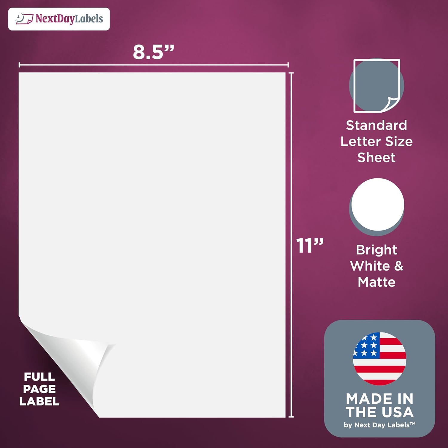NextDayLabels - Full Page Labels 8.5 x 11 - White Shipping Labels - 8.5 x 11 Label Paper for Printer - Large Blank Matte Sticker Printer Paper - Laser/Inkjet Printer Labels (1 Per Sheet, 1000 Labels)