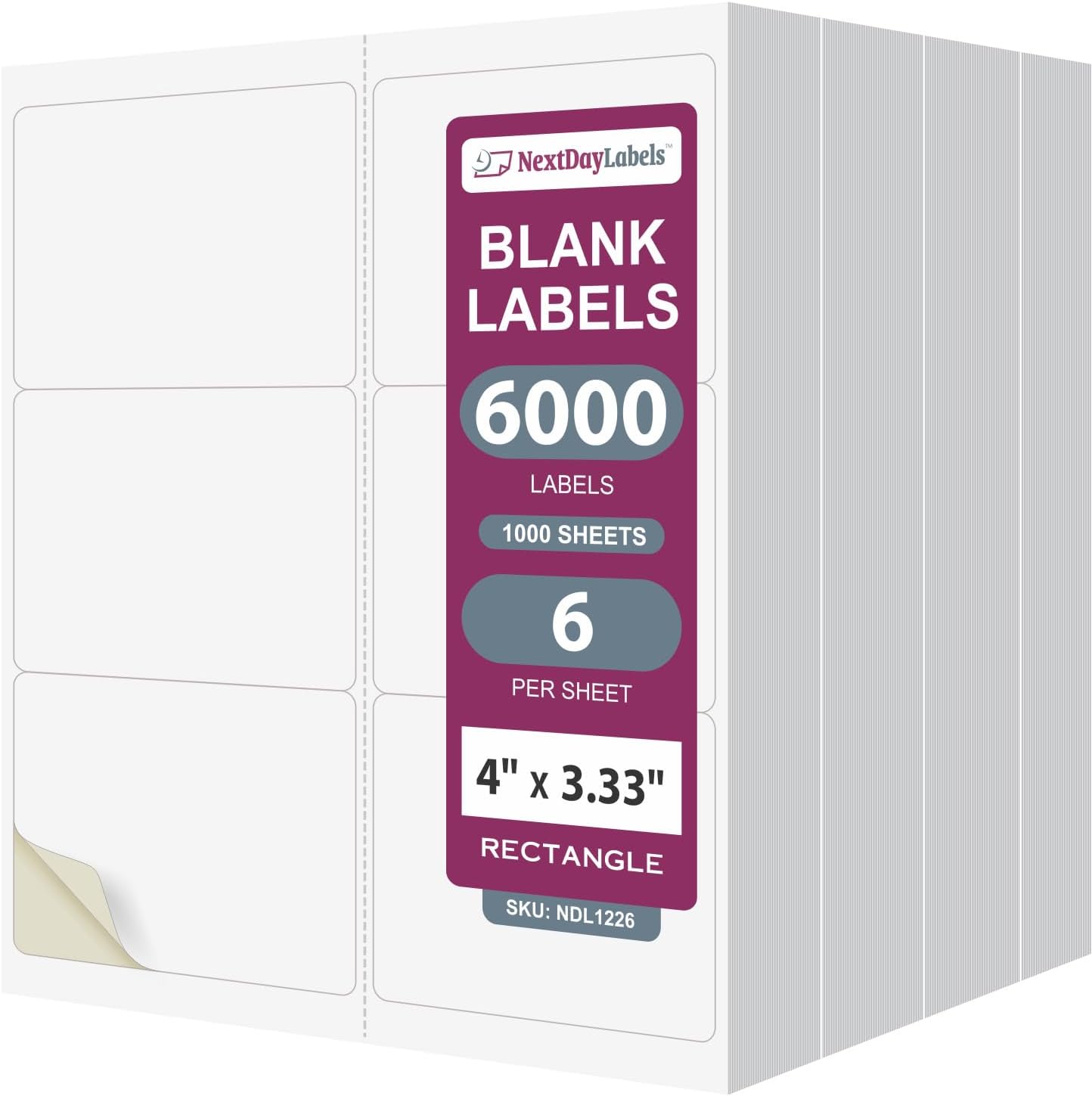 NextDayLabels – 4" x 3-1/3" Rectangular Sticker Labels for Printer - White Laser/Inkjet Printer Labels Return Address Labels Shipping Label Stickers (1000 Sheets, 6 Per Sheet, 6000 Labels)