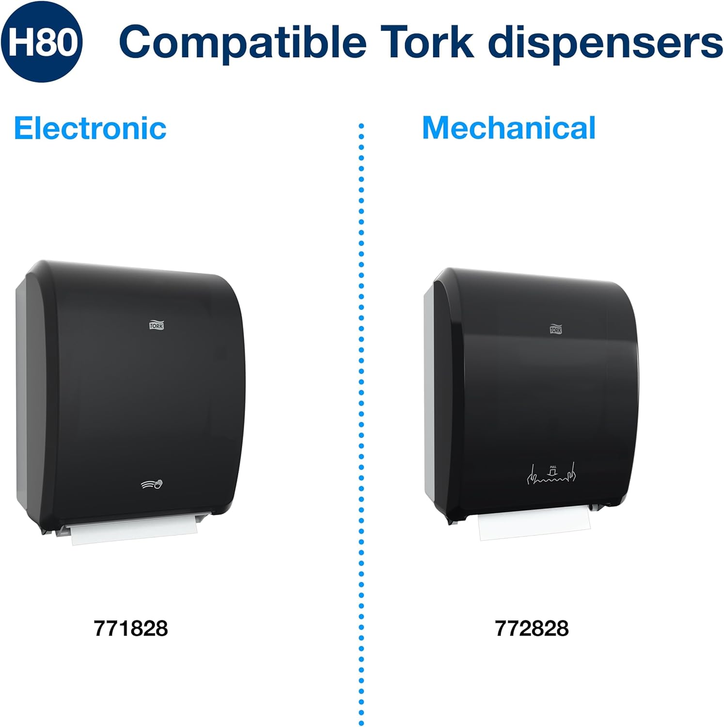 - 6 rolls, 1 ply. Universal quality. Roll size L 630.0'. W 8.0" Core inner diameter 1.9" Compatible with H80 dispensers.