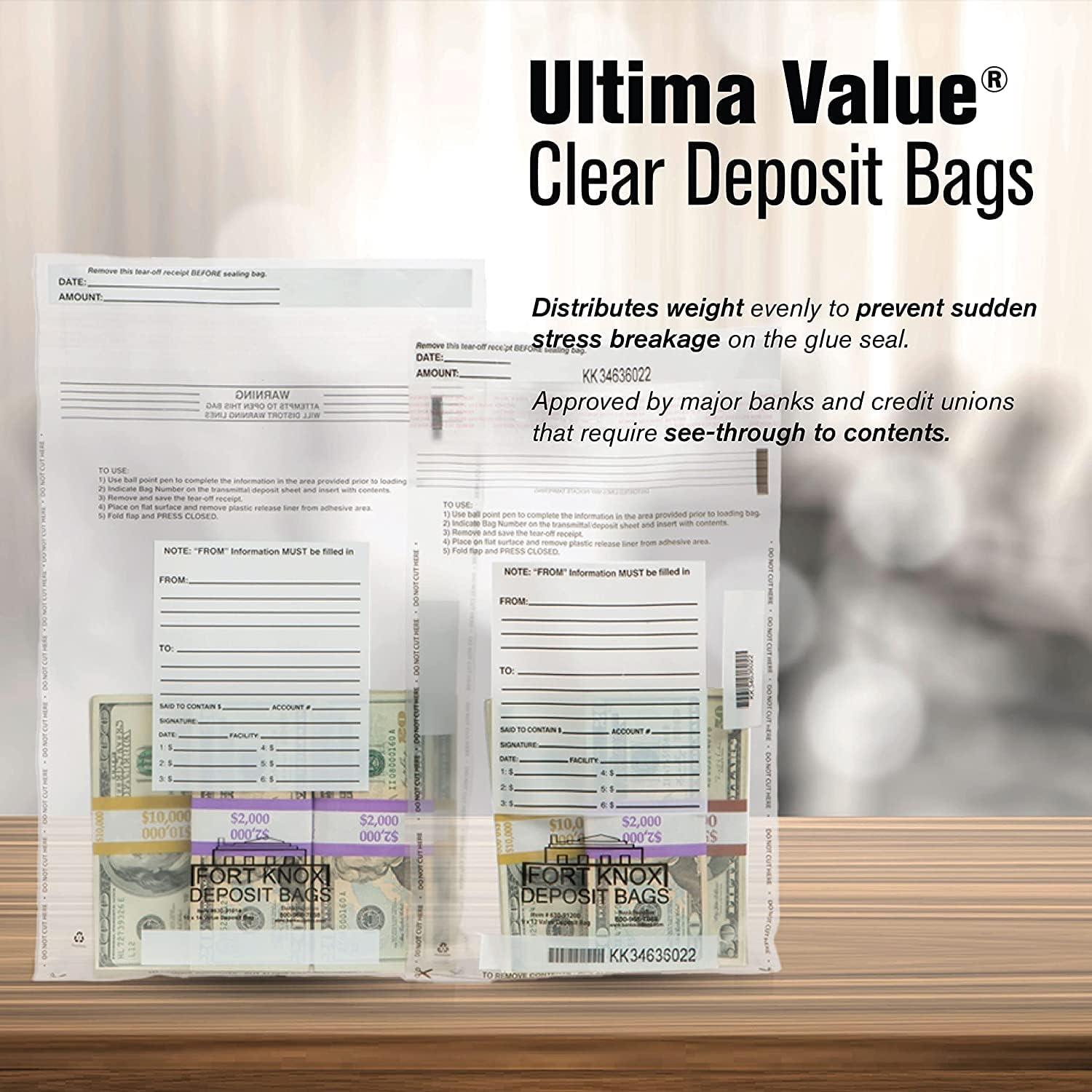 - CLEAR DEPOSIT BAG: Ultima Value is a great security bag with tamper-evident features that make it impossible to hide tampering or unauthorized entry. Simply stuff the bank drop bag and drop it in the night deposit box.
