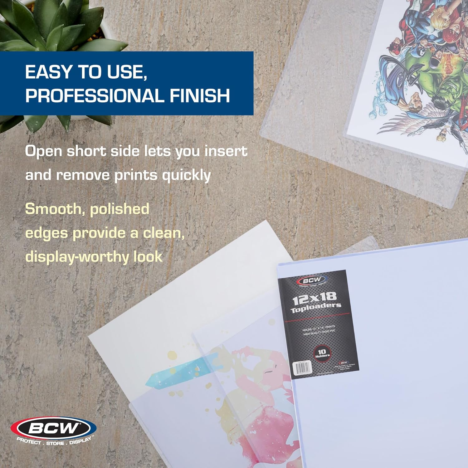 - Premium Protection for 12x18 Lithographs and Prints: BCW's 12x18 toploader is designed to securely protect and display your lithographs, prints, and documents. Crafted from rigid, high-quality PVC, this holder offers durability and excellent visual presentation.