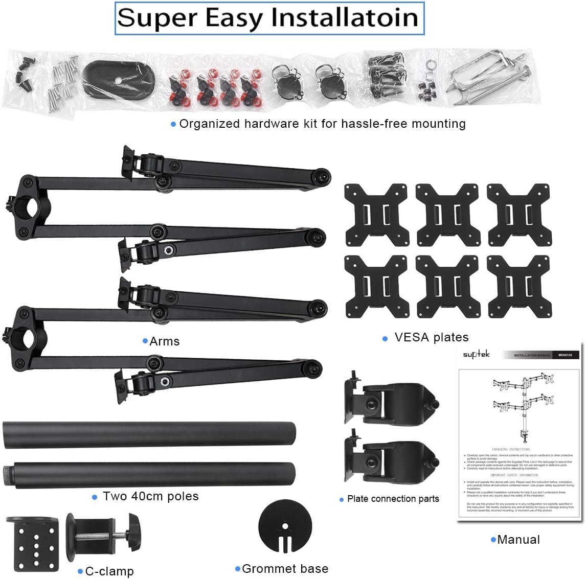 - Easy installation - Step-by-step user manual and organized hardware kit for hassle free mounting.