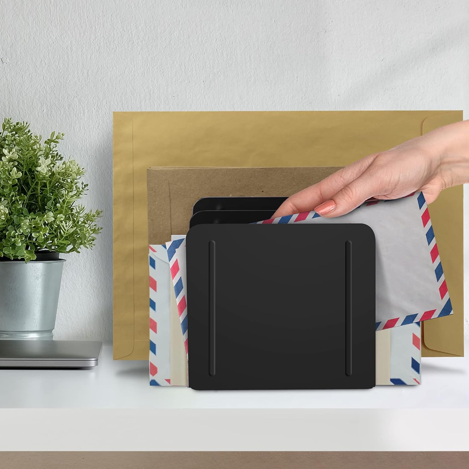 - Durable Construction: Made from sturdy metal and finished with high-quality electrostatic powder paint, this file sorter is built to last. The rounded edges ensure safe handling, while its compact size (6 5/16" x 4 7/8" x 7 1/8") fits neatly on any desk without taking up too much space;