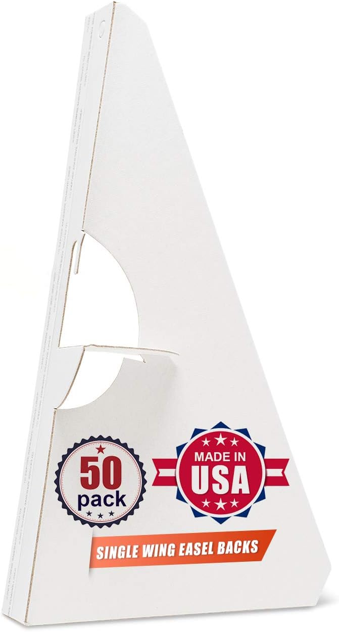 - Package: This adhesive easel measures at 12 inches, with a single wing. Pack of 50, White