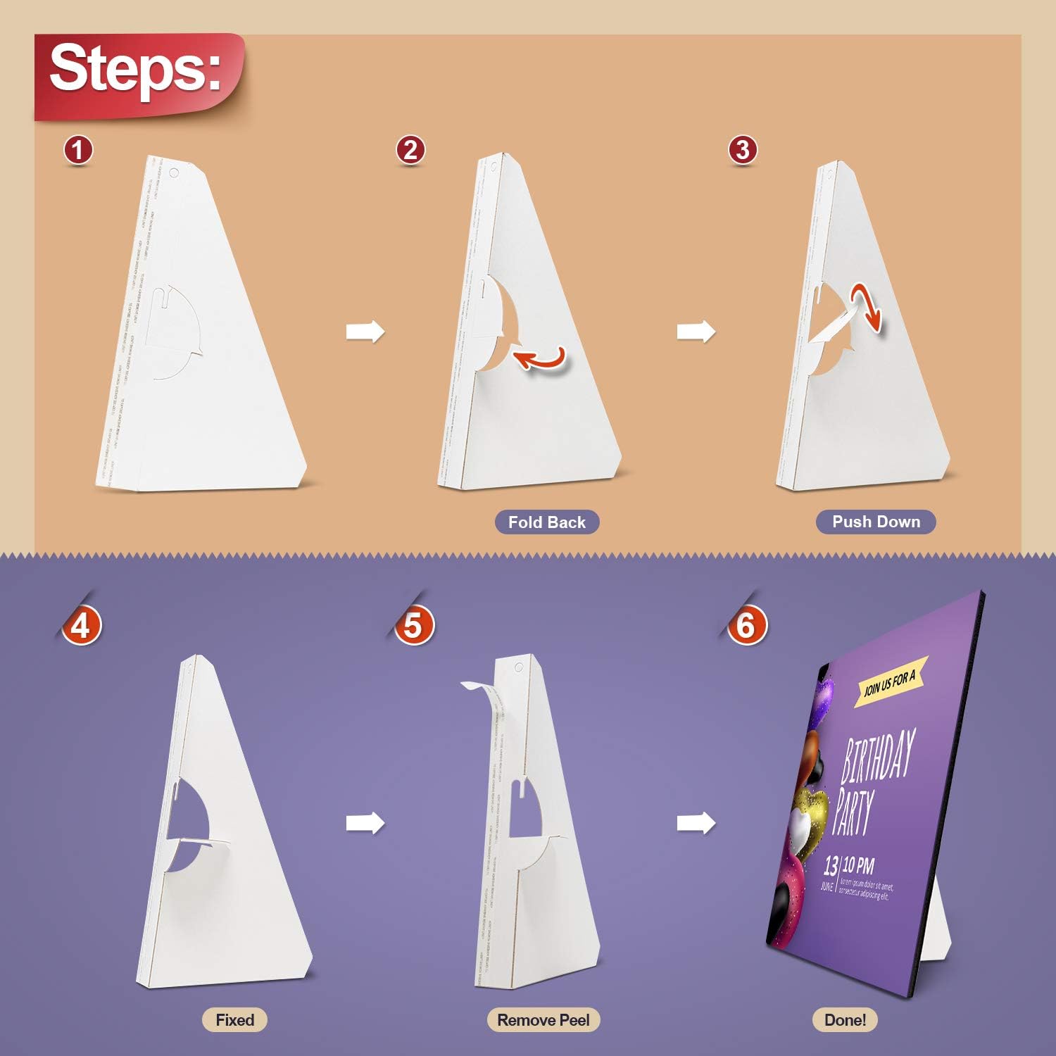 - Easy Application: Self-Stick Easel Backs are attractive, sturdy, and easy to use. Simply peel and stick for professional looking signs and displays