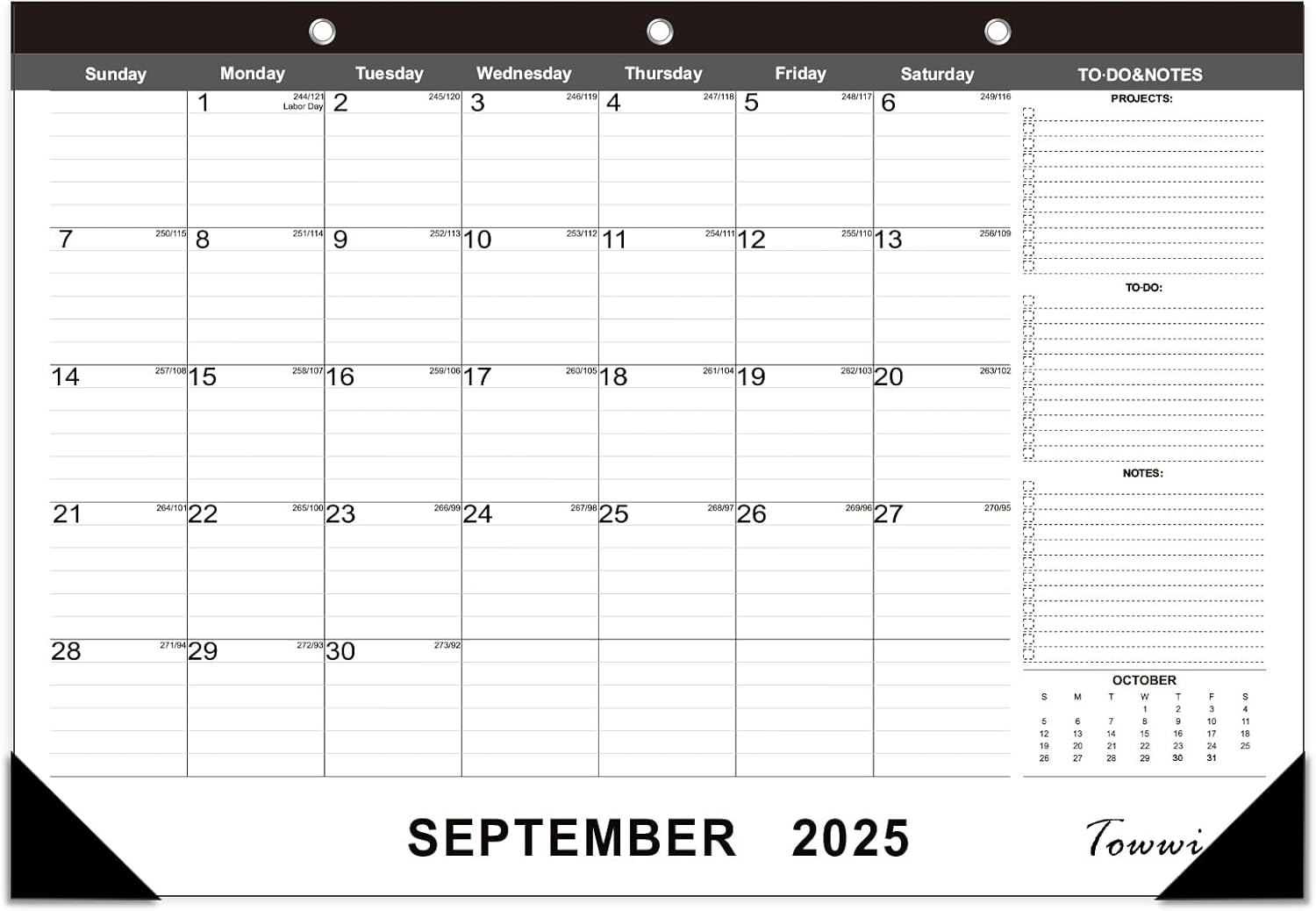 TOWWI Desk Calendar 2025-2026, Large Wall or Desktop Monthly Calendar for Daily Schedule, Office, Home - 16.7x11.6 inches (Black)