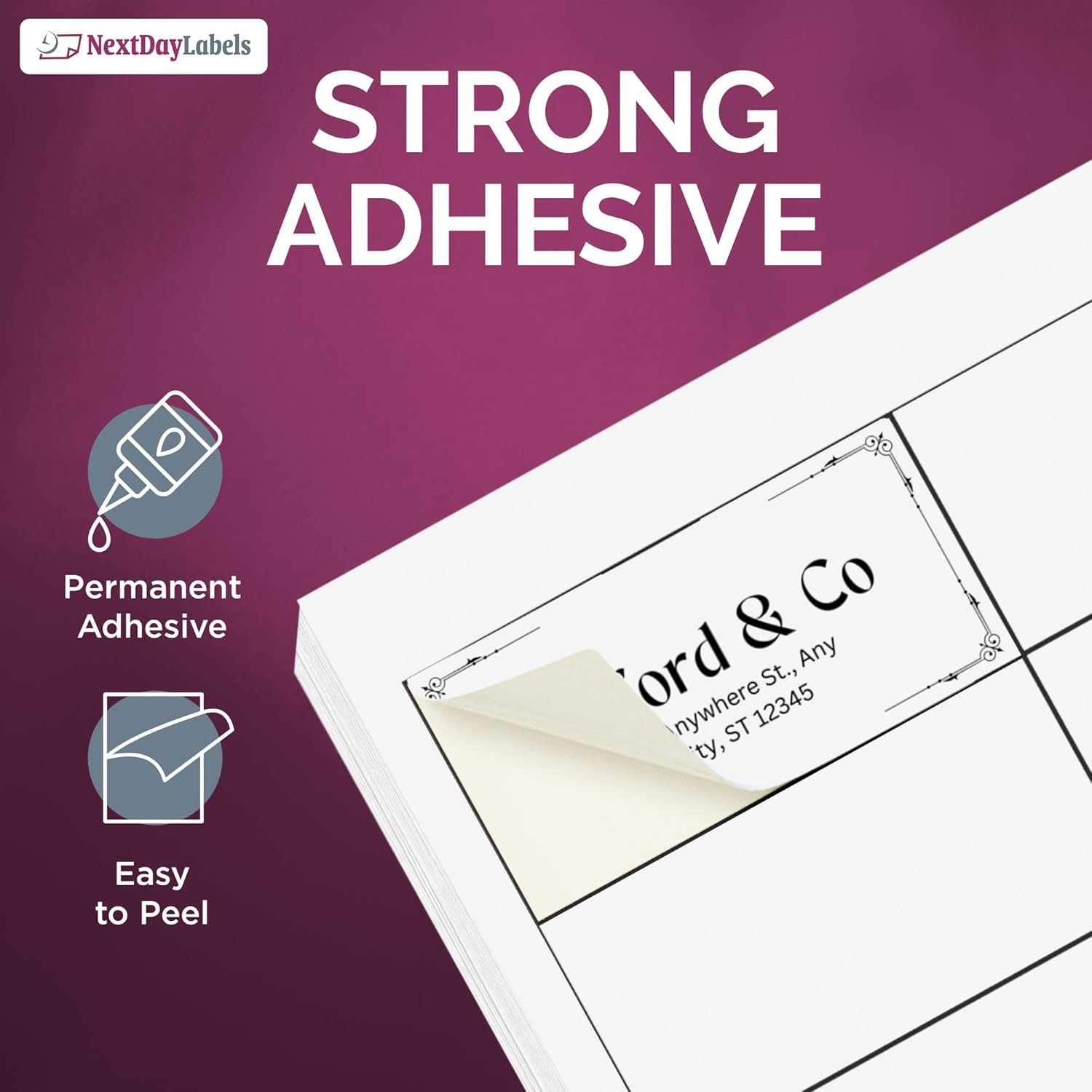 - STRONG PERMANENT ADHESIVE - Bright matte white labels stickers with a strong permanent adhesive so they attach firmly to boxes, pallets, cardboard, envelopes, paper, glass, plastic, metal, tin, and more. Will work with all Laser, Inkjet, Copy Machines, and Offset Printers.