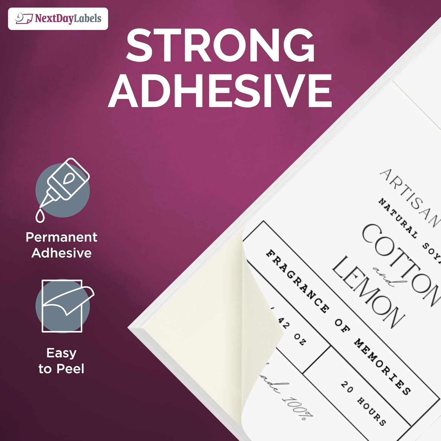 - STRONG PERMANENT ADHESIVE - Bright matte white labels stickers with a strong permanent adhesive so they attach firmly to boxes, pallets, cardboard, envelopes, paper, glass, plastic, metal, tin, and more. Will work with all Laser, Inkjet, Copy Machines, and Offset Printers.