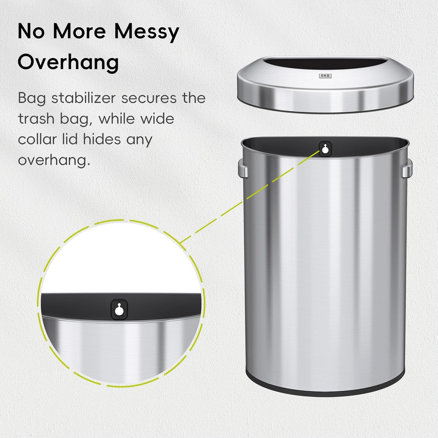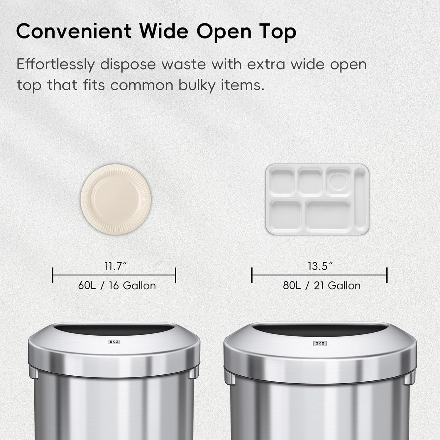 EKO Urban 16 Gallon Semi-Round Open Top Waste Bin, Stainless Steel Half Round Commercial Trash Can for Indoor and Outdoor, Extra Large Metal Garbage Bin for Home, Office, Restaurant, Restroom, 60L