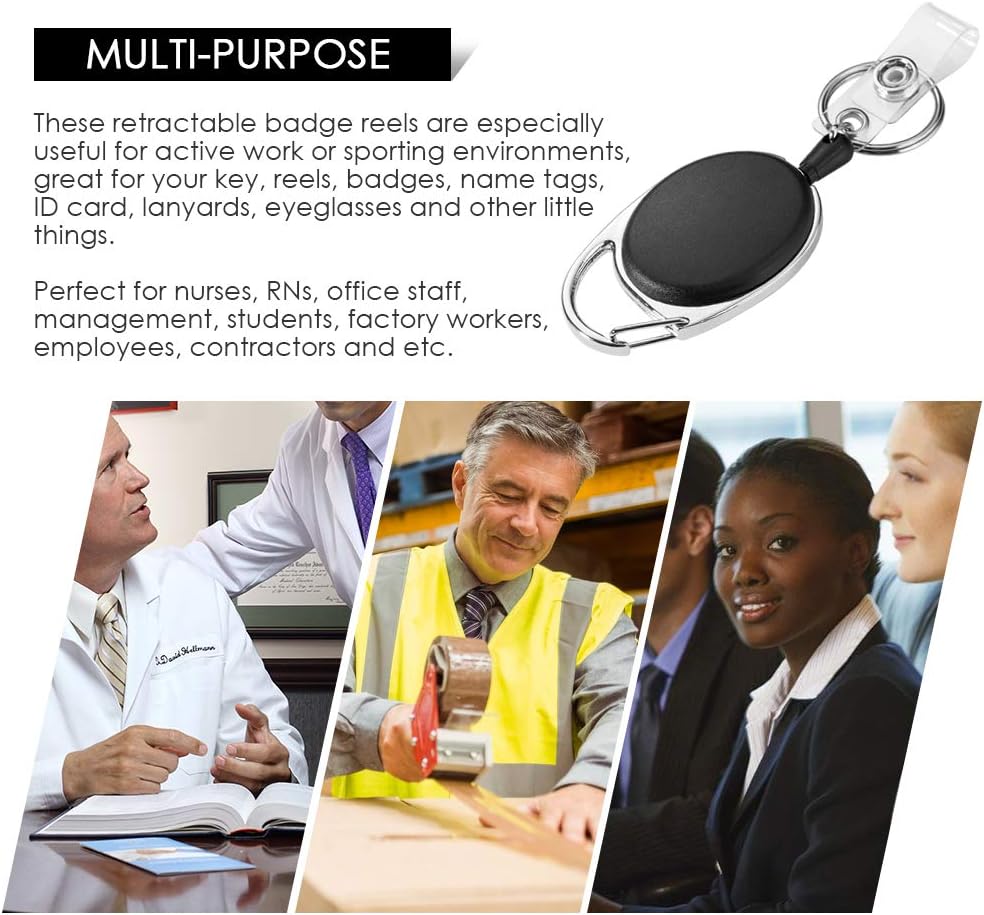 - Wide application- These retractable badge reels can be used for active work or sporting environments, great for your badges, reels, name tags, ID cards, keys, lanyards, eyeglasses and other little things. Perfect for nurses, RNs, office staff, management, students, factory workers, employees, contractors and etc.