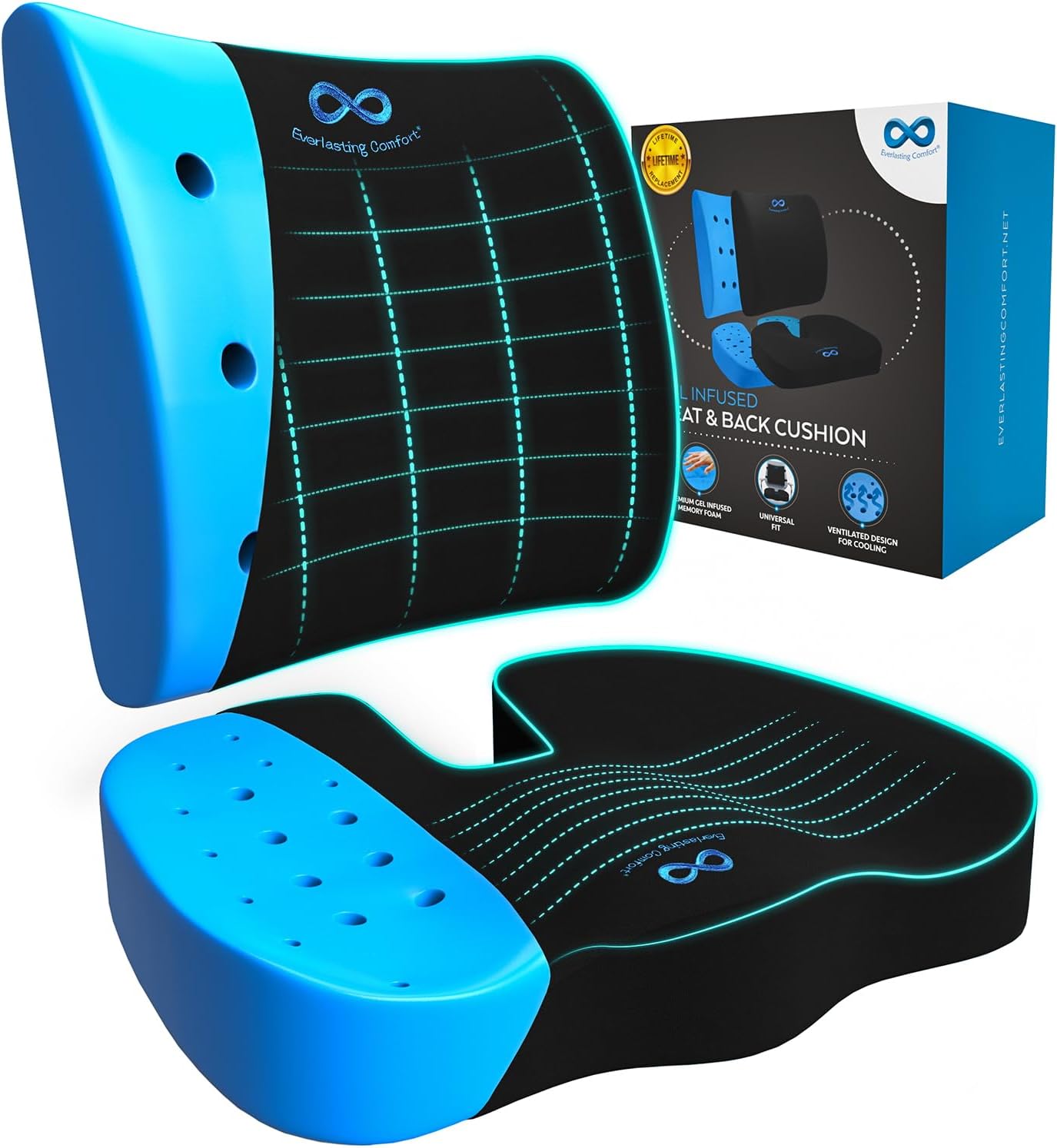 Everlasting Comfort Doctor Recommended Memory Foam Seat Cushion for Office Chairs & Car Seat - Ergonomic Office Desk Accessories for Tailbone Pain Relief, Sciatica & Back Support