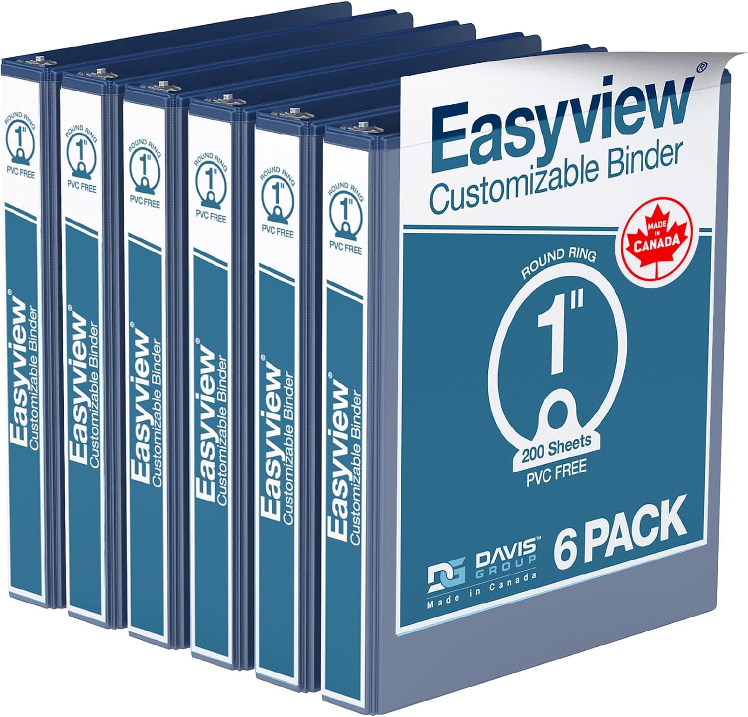 Easyview Premium 3-Ring Binders with Clear-View Covers and Round Rings, Binders for School or Office, 1 Inch, Pack of 6, Royal Blue