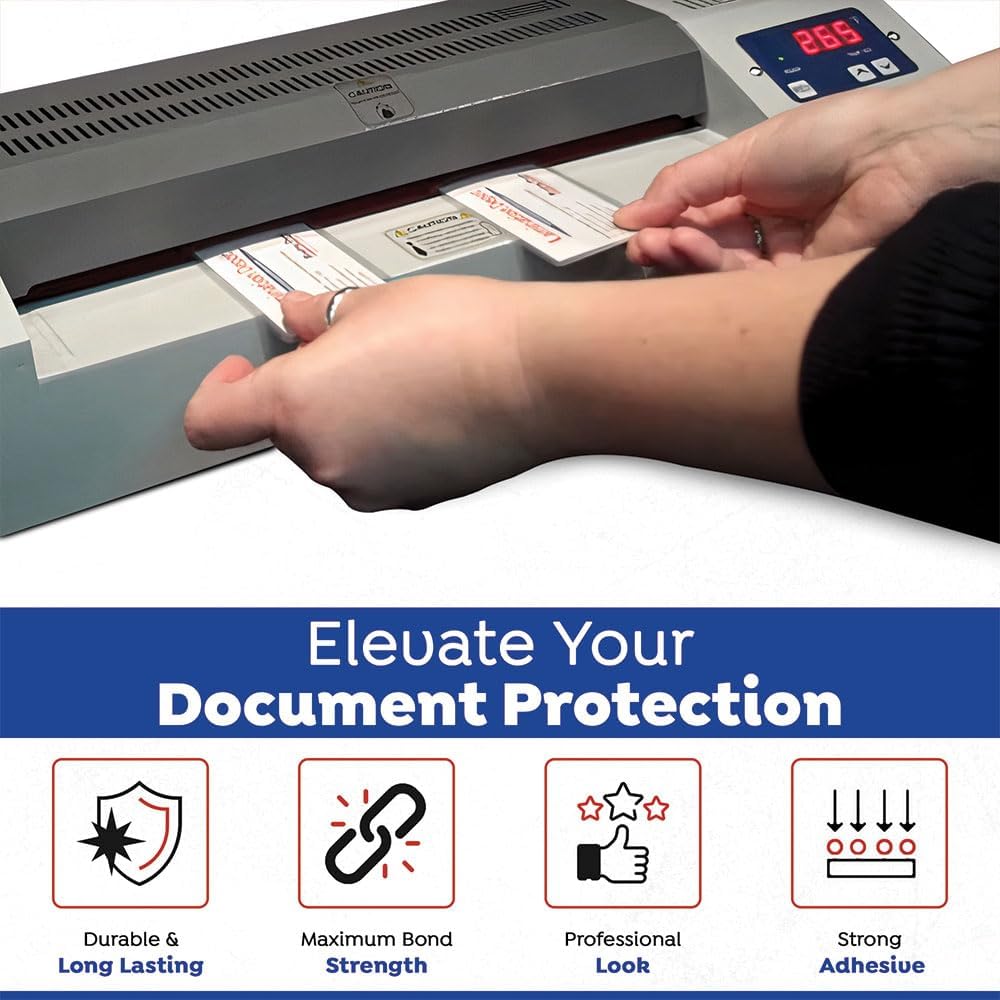 - PRE-SIZED POUCHES - Insert your letter size document into the pre-sized 9 in. x 11-1/2 in. pouch, leaving 1/8 margins to ensure a long-lasting and secure bond.