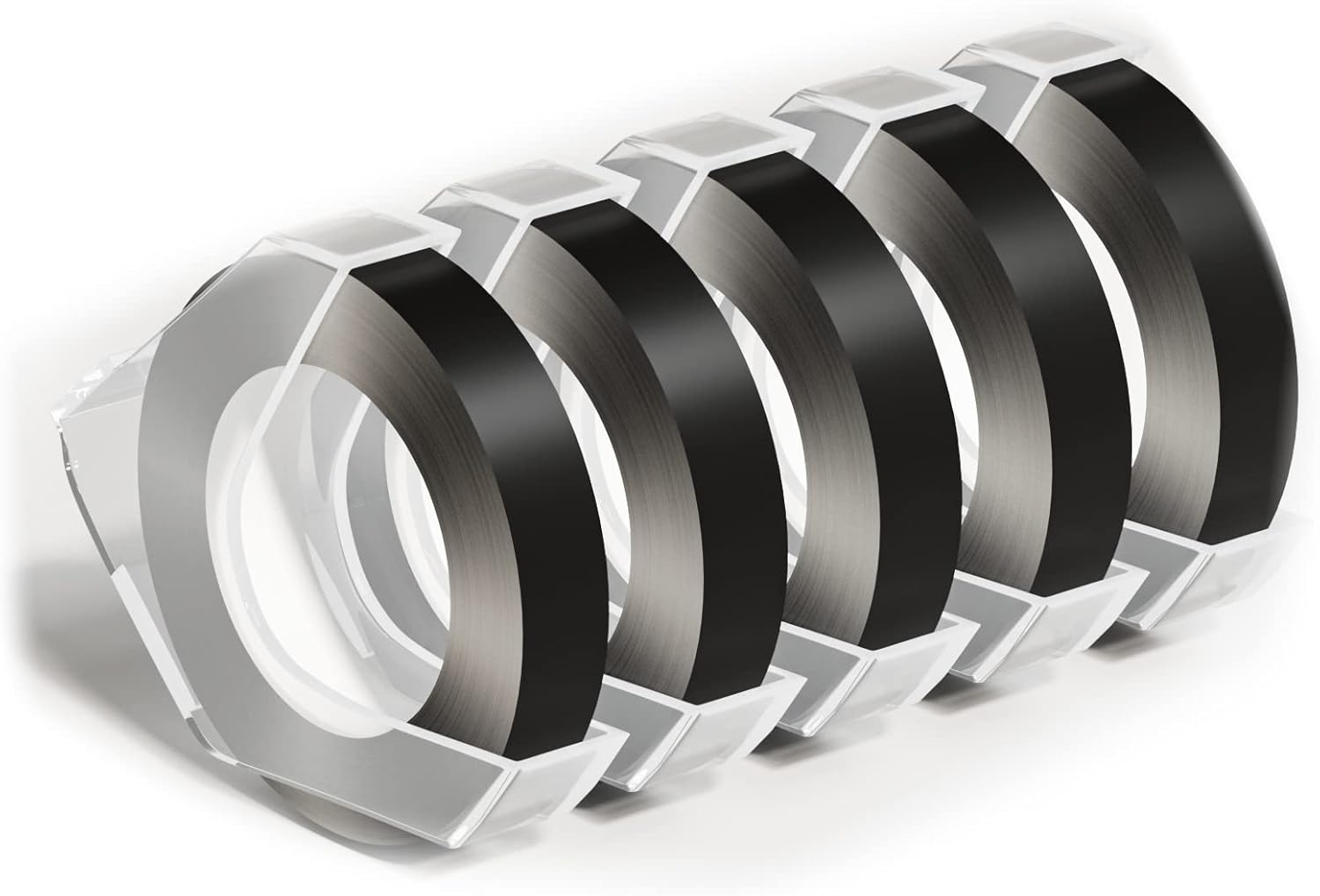 - This 5 pack of Replacement for DYMO Embossing Tape is good for organising and labelling items around the home or office.