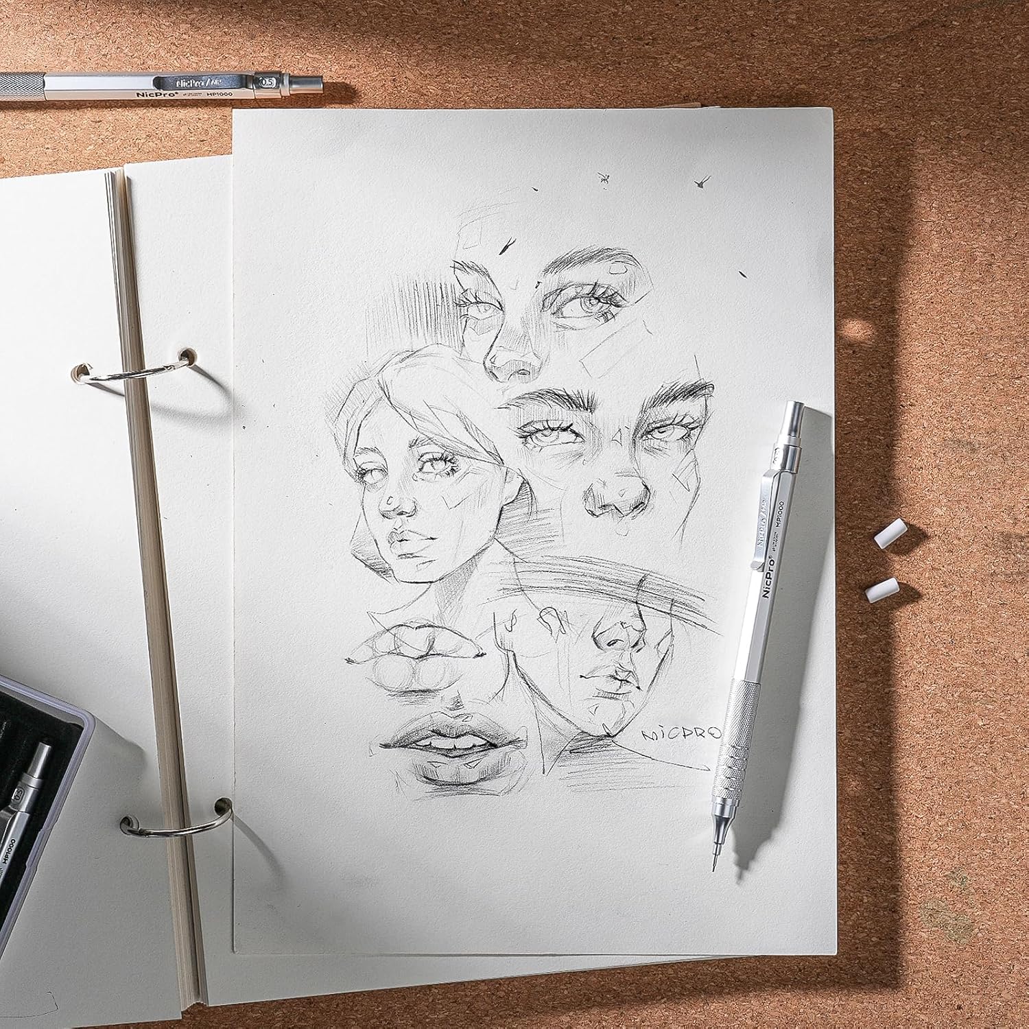 - 【Metal Threaded Anti-skidding Grip】: Nicpro MP1000 pencil adopt fancy hexagon barrel design with metal threaded grip, well balance pencil which bring you comfortable & fatigue-free writing & drafting experience