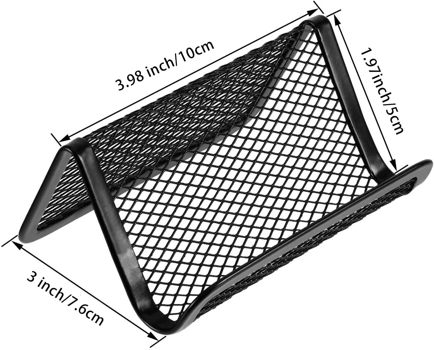 - The business card holders are made of metal, it is well painted, which made of hard and long-lasting rolled mesh steel, the unique crisscrossed design gives your work space a curb appeal all its own.