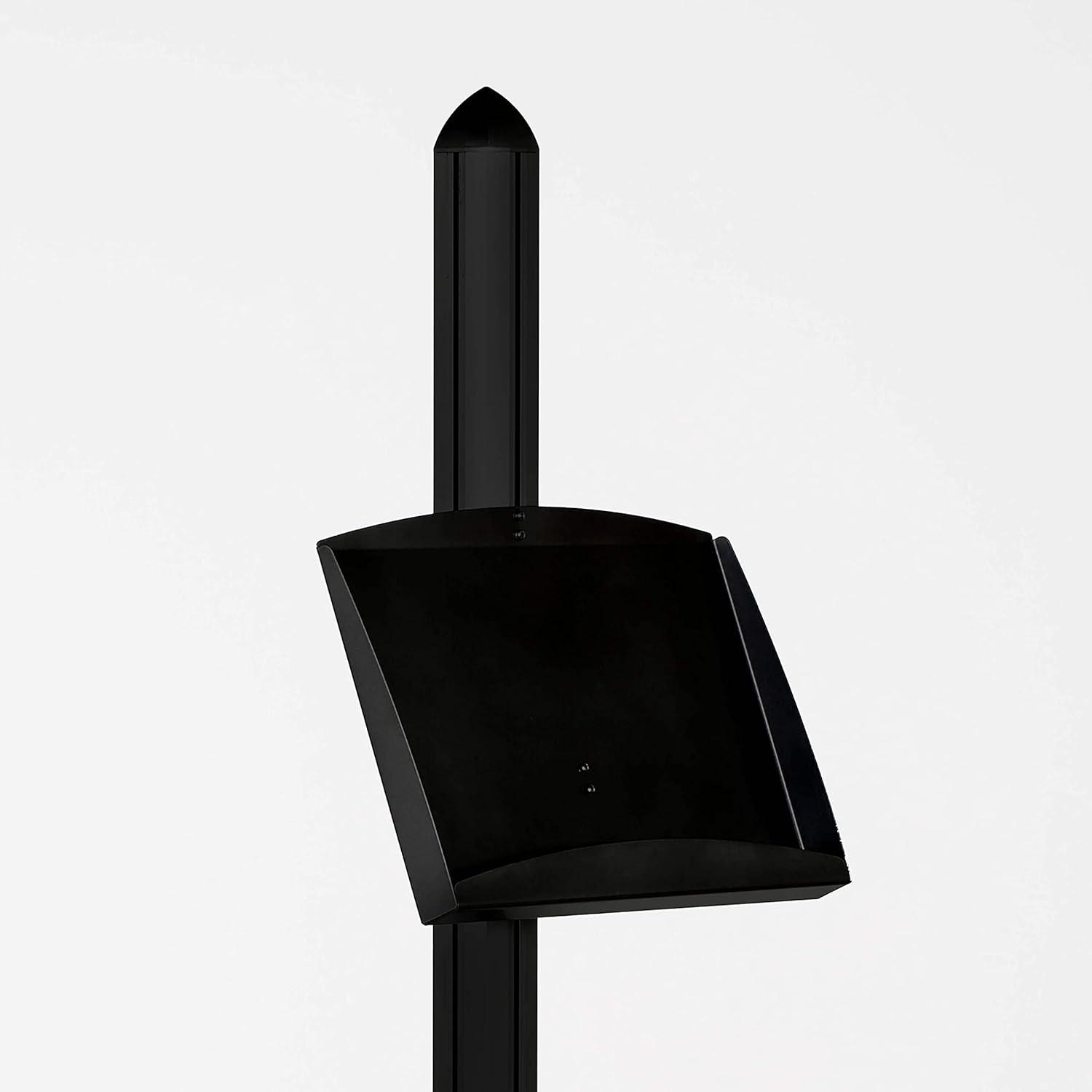 M&T Displays Free Standing Magazine Brochure Document Sign Holder Literature Racks Stand Aluminum Body Black 8.5x11 Inch Snap Poster Frames and 3 Pcs Steel Shelves with 6x(8.5x11) Display Capacity