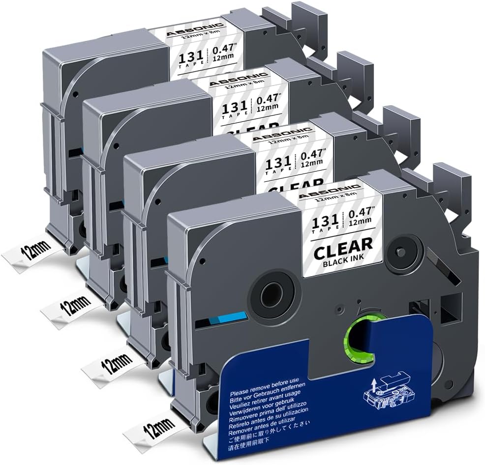 - Color: 4 Pack ptouch tze 12mm clear Label Tape Compatible for Brother P touch Tze131 Tz-131 Aze-131 Tze 131 Laminated black on clear; Size: 1/2inch (12mm) Width x 26.2ft (8m) Length