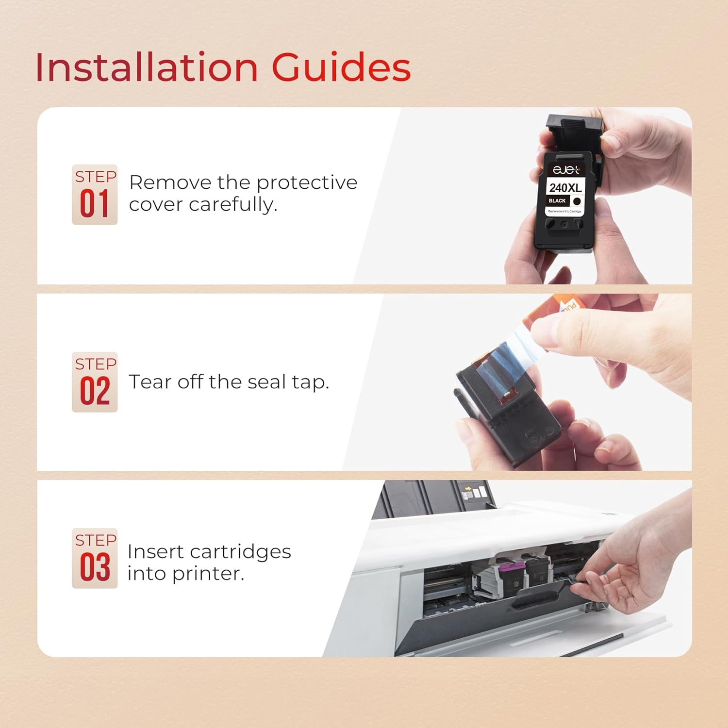 - 【Equip with Latest Chips】 ejet 240 XL PG--240XL Black Ink Cartridge high yield equipped with upgraded smart chips ensure each ink cartridge will be 100% recognized by compatible printers quickly and display accurate ink level, you can enjoy worry-free and efficient printing