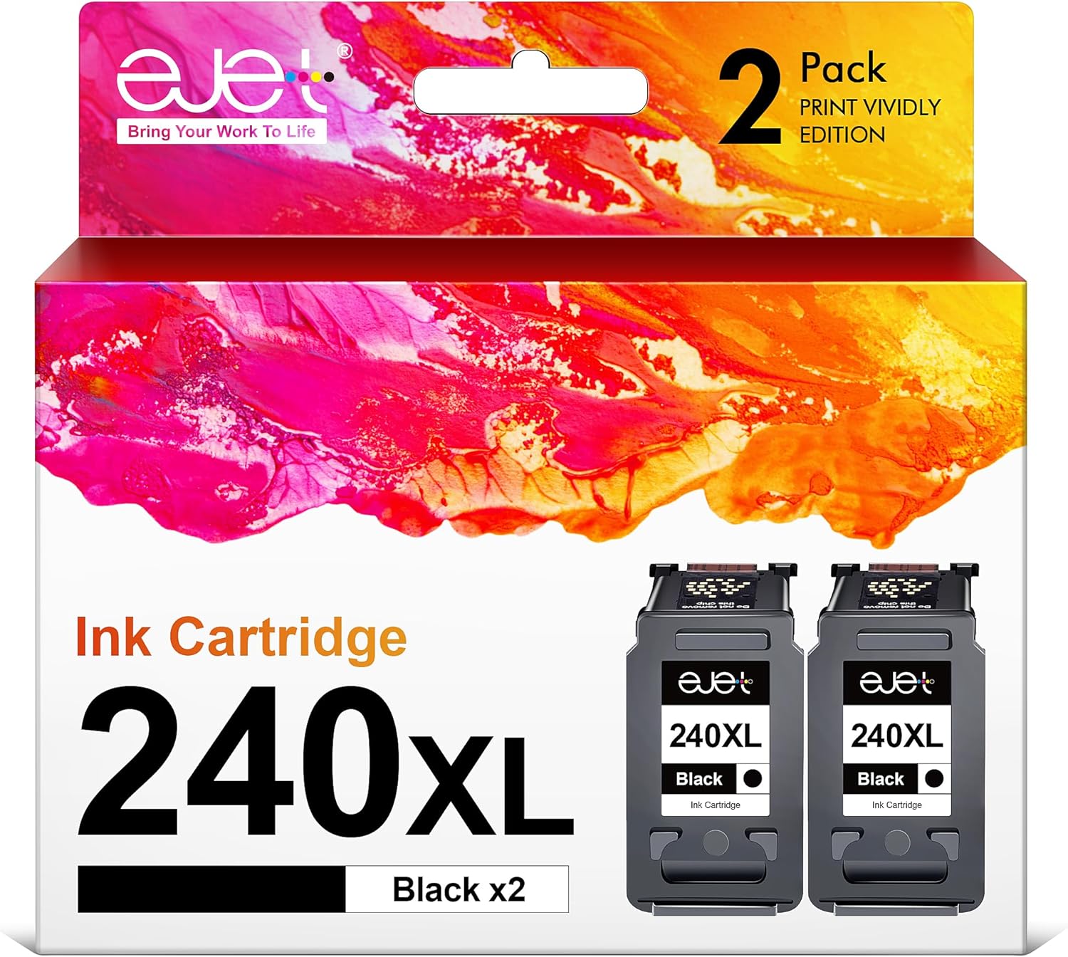 ejet 240XL PG-240 Black Ink Cartridge Remanufactured Replacement for Canon 240XL Black Ink Cartridge PG-240 XL for Canon Pixma MG3620 TS5120 MG2120 MG3520 MX452 MX512 MX532 MX472 Printer (2-Black)