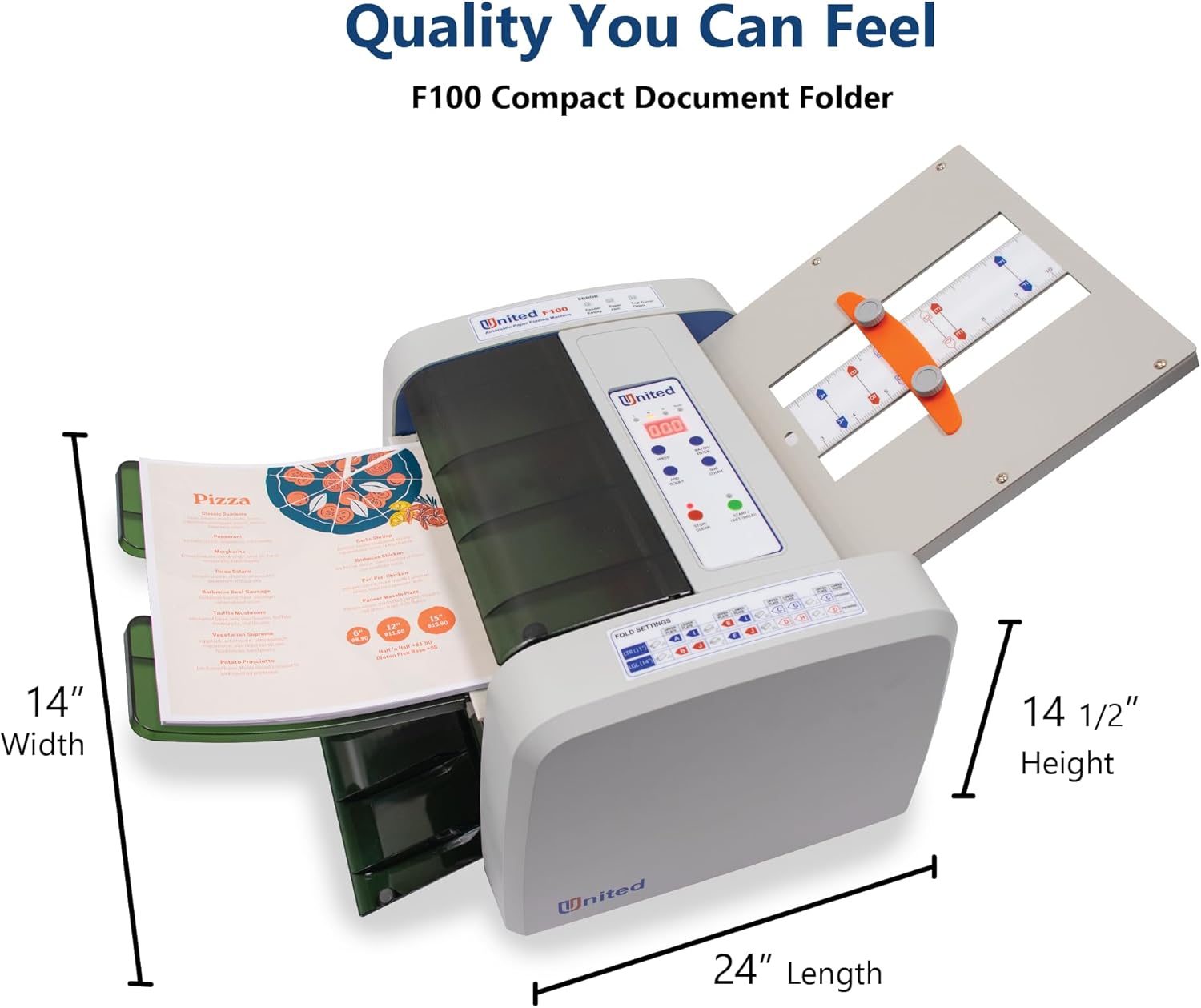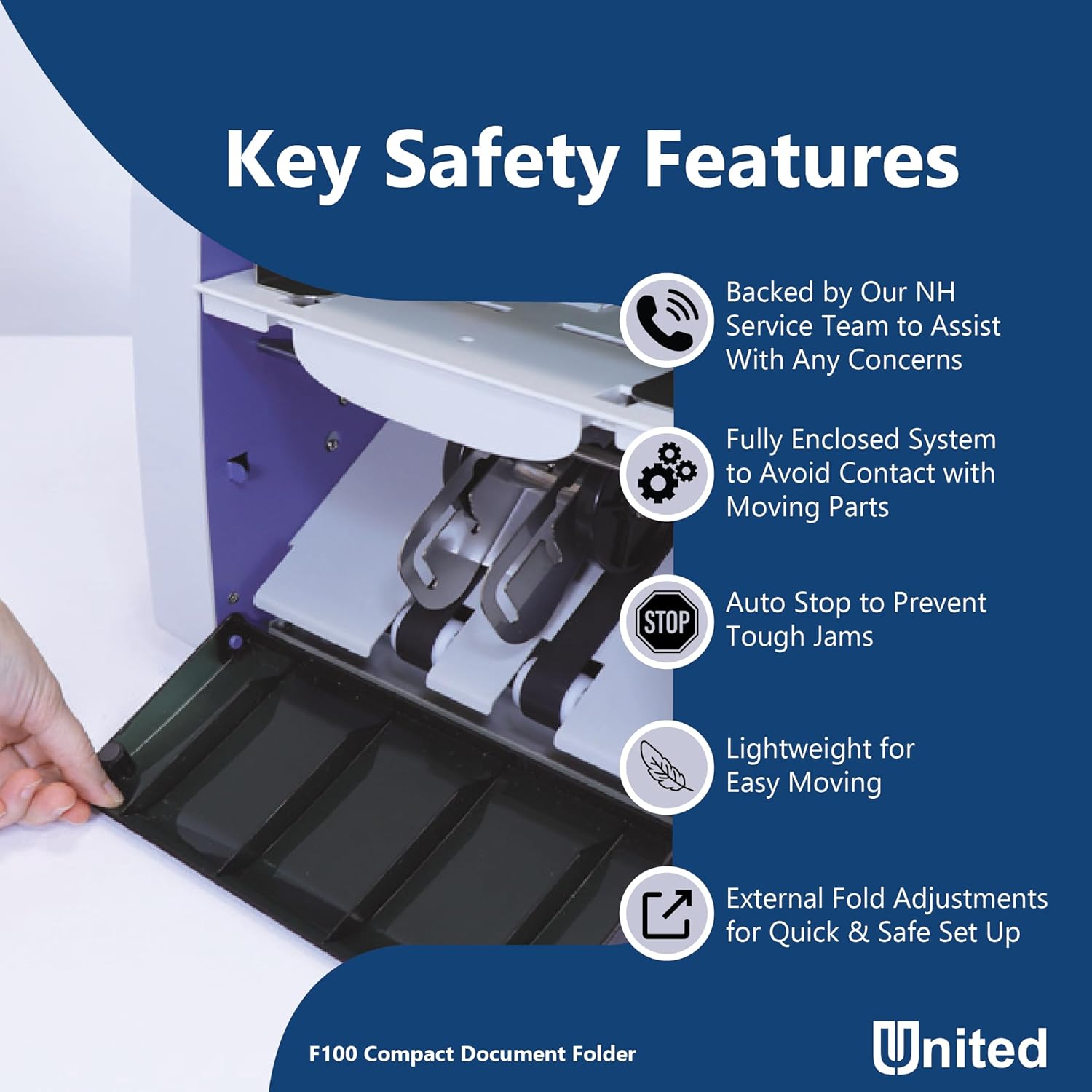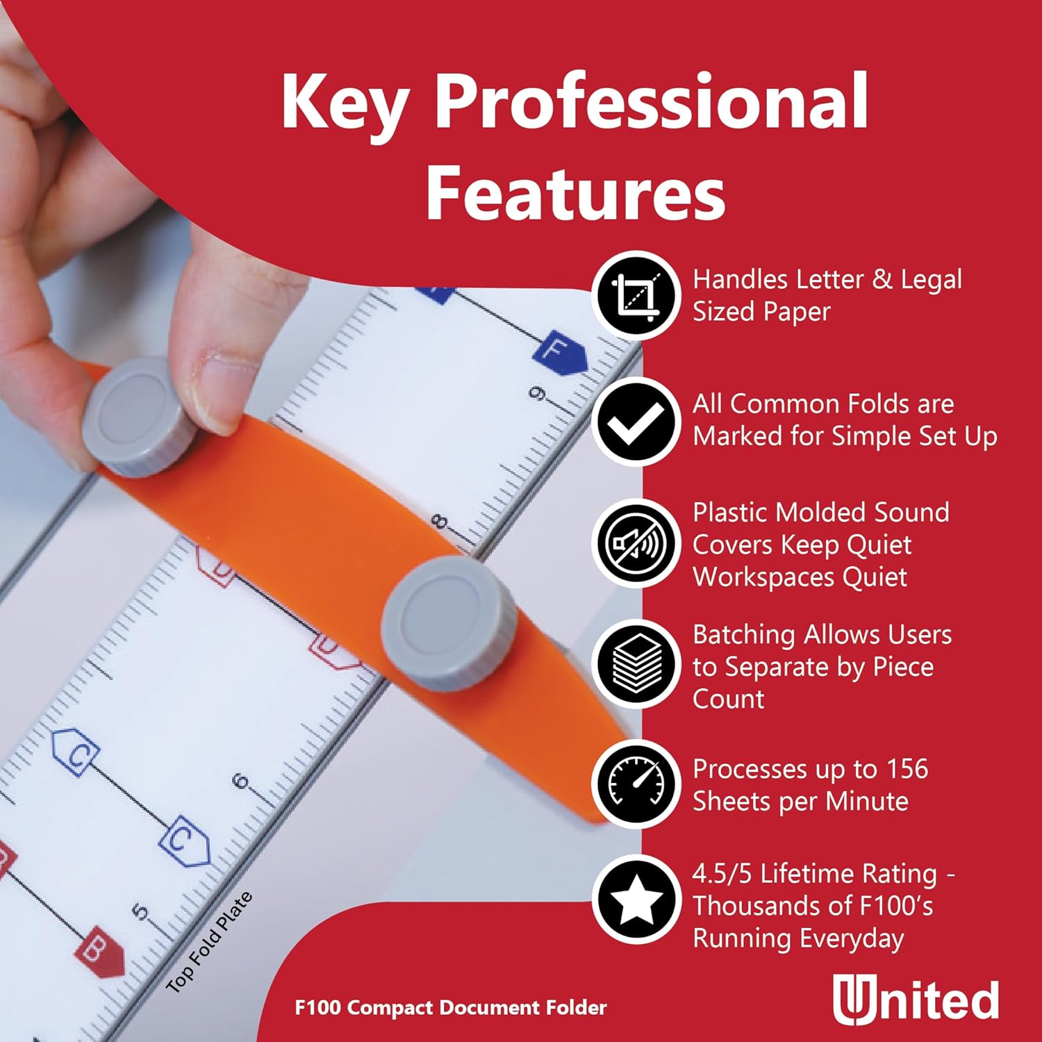 United Office Products F100 Automatic Paper Folding Machine, 200-Sheet Capacity, Folds Letter and Legal Size Paper, High-Speed Letter Folding Machine for Offices, Schools and Churches