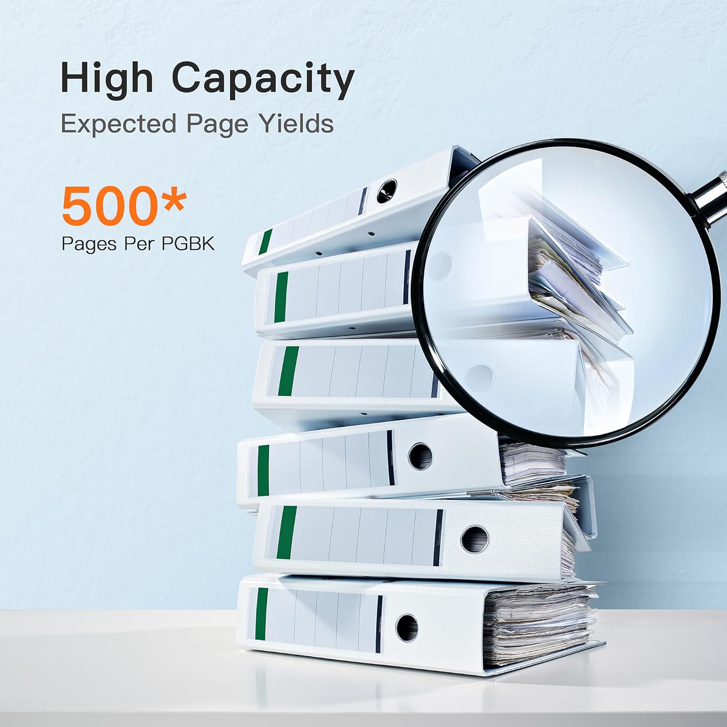 - Page Yield: Large Black is 500 pages per cartridge (5% coverage)