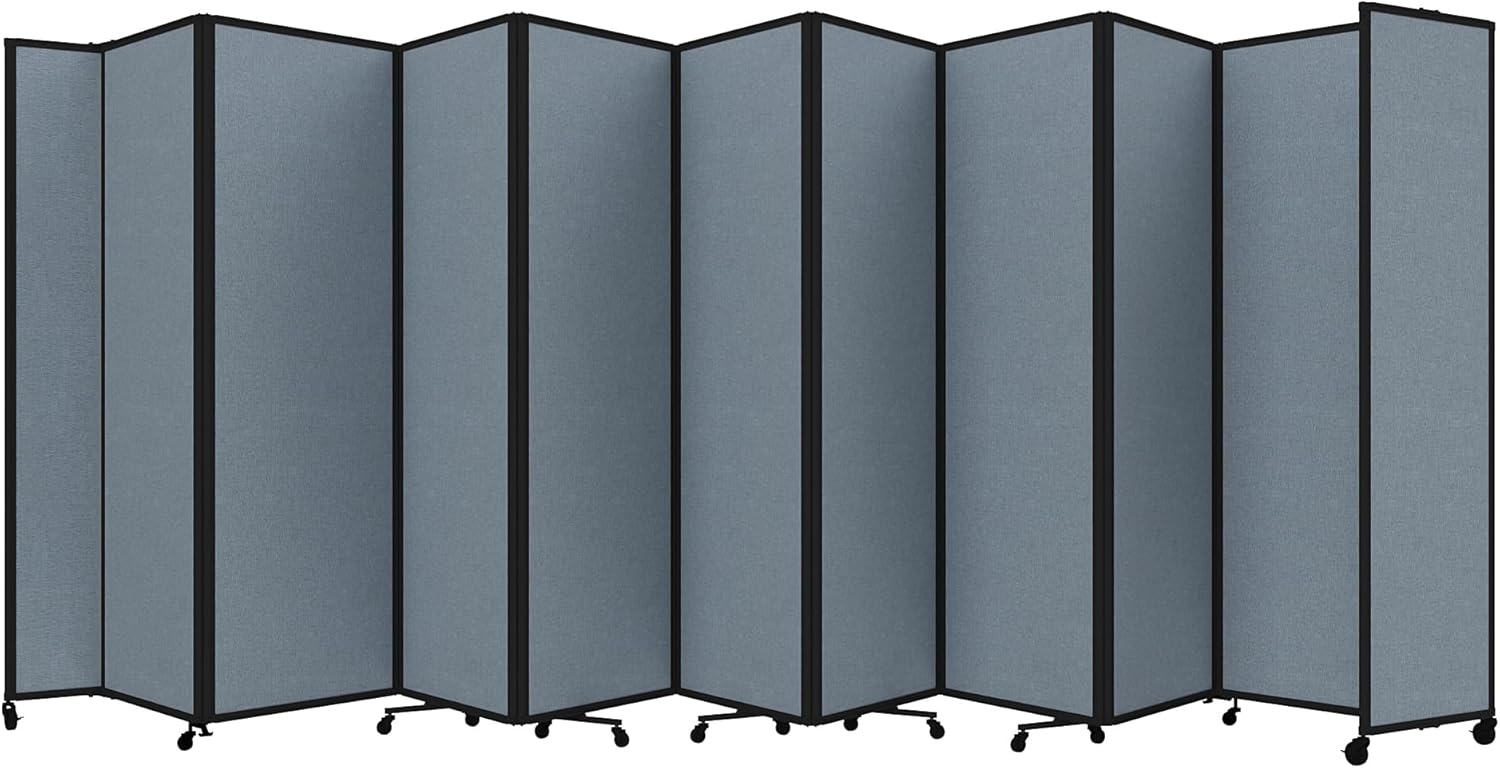 Versare Room Divider 360 Portable Wall Partition | Folding Panels | Large Freestanding Divider | Locking Wheels | Temporary Room Separator | 25' x 7'6'', Powder Blue