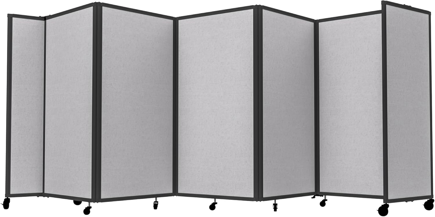 - THOUGHTFUL DESIGN: Made to roll around easily on wheels, this portable room separator also features locking casters to hold it in place. It comes with a trackable surface, sound-dampening fiberglass panels and a folding design for easy storage.