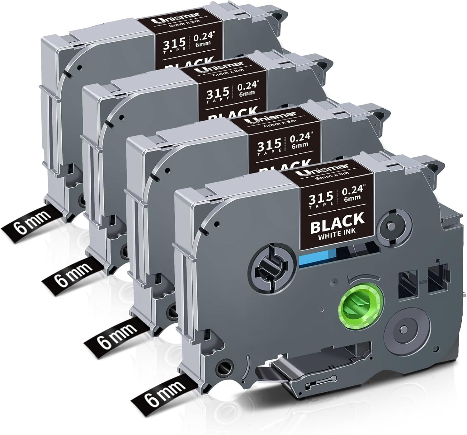 Unismar Compatible for Brother 6mm White on Black Label Maker Tape TZe-315 TZ315 TZe 6mm 0.23 Black Tape Work for PTD220 PTD200 PTD210 PTD600 PTD400 PTH100 PTH110 PT1280 PT1890, 1/4'' x 26.2', 4-Pack