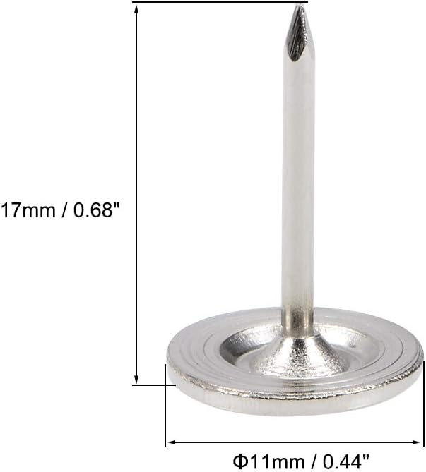 uxcell Upholstery Nails Tacks 11mmx17mm Flat Head Furniture Nails Pins Silver Tone for Furniture Sofa Headboards, 100 Pcs