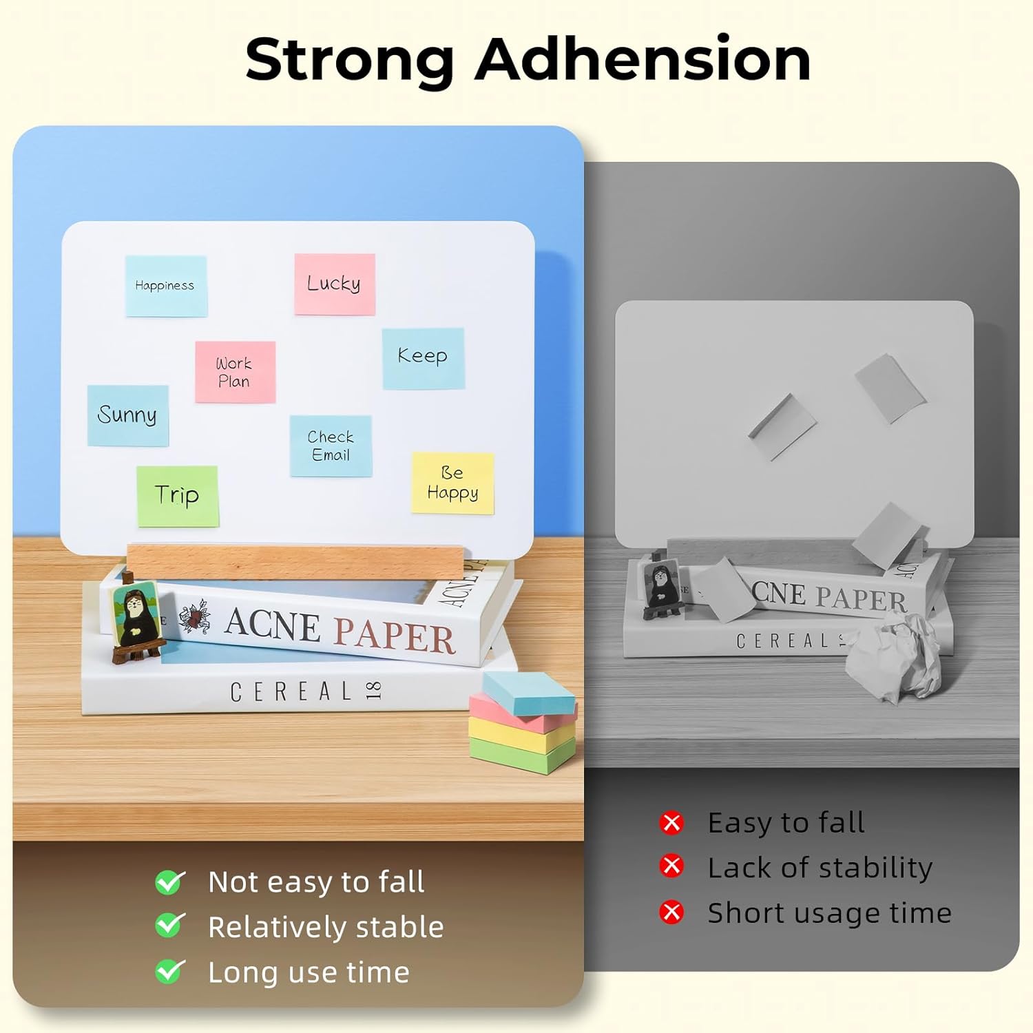 - Super Sticky: Strong adhesive, make sure sticky notes don't fall off, helping you note great ideas and removes cleanly as well.