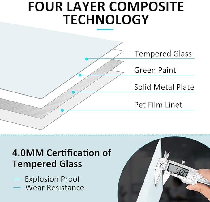 - 【FRAMELESS TEMPERED GLASS BOARD】- Easy to erase, no ghosting, will not dent, highly scratch resistant, high factor of safety. A steel sheet behind the glass that makes it magnetic. Included magnets work (Other would have to be powerful magnets).