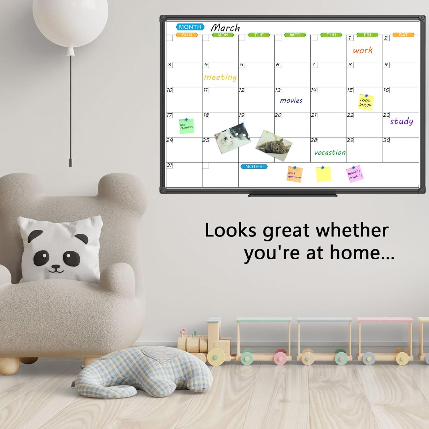 - SMOOTH & ROBUST DRY ERASE PERFORMANCE: Smooth Scratch-Resistant surfaces, enjoy writing message notes on 47.5" x 34.5" calendar board, easily dry wipe with all dry-erase markers.